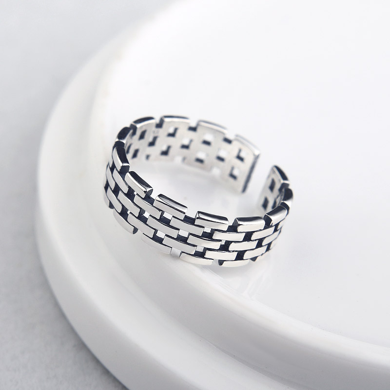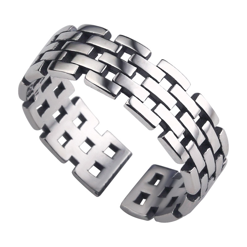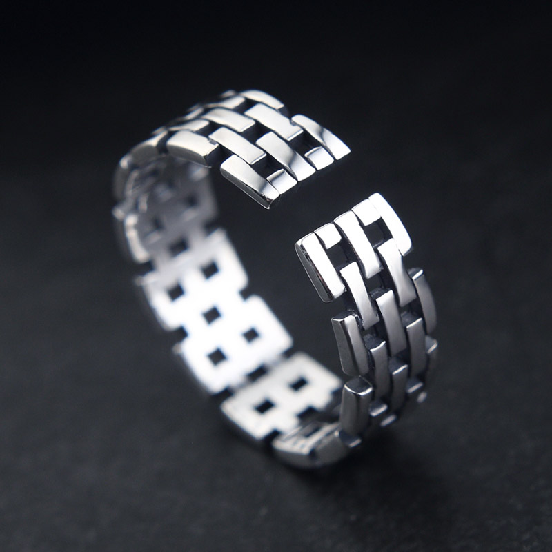 清雨银时尚S925纯银复古泰银男女情侣开口表带链条简洁戒指指环