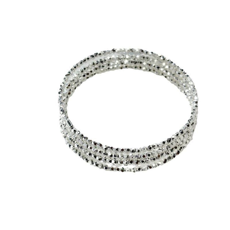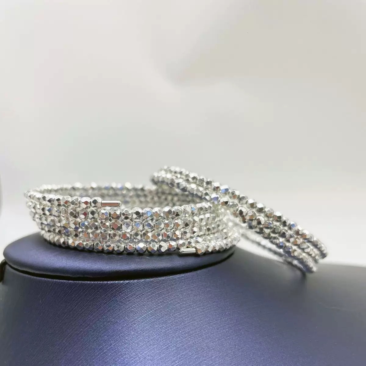S925银简约个性四层镭射蹦迪手镯女小众冷淡风可调节软银弹力手链