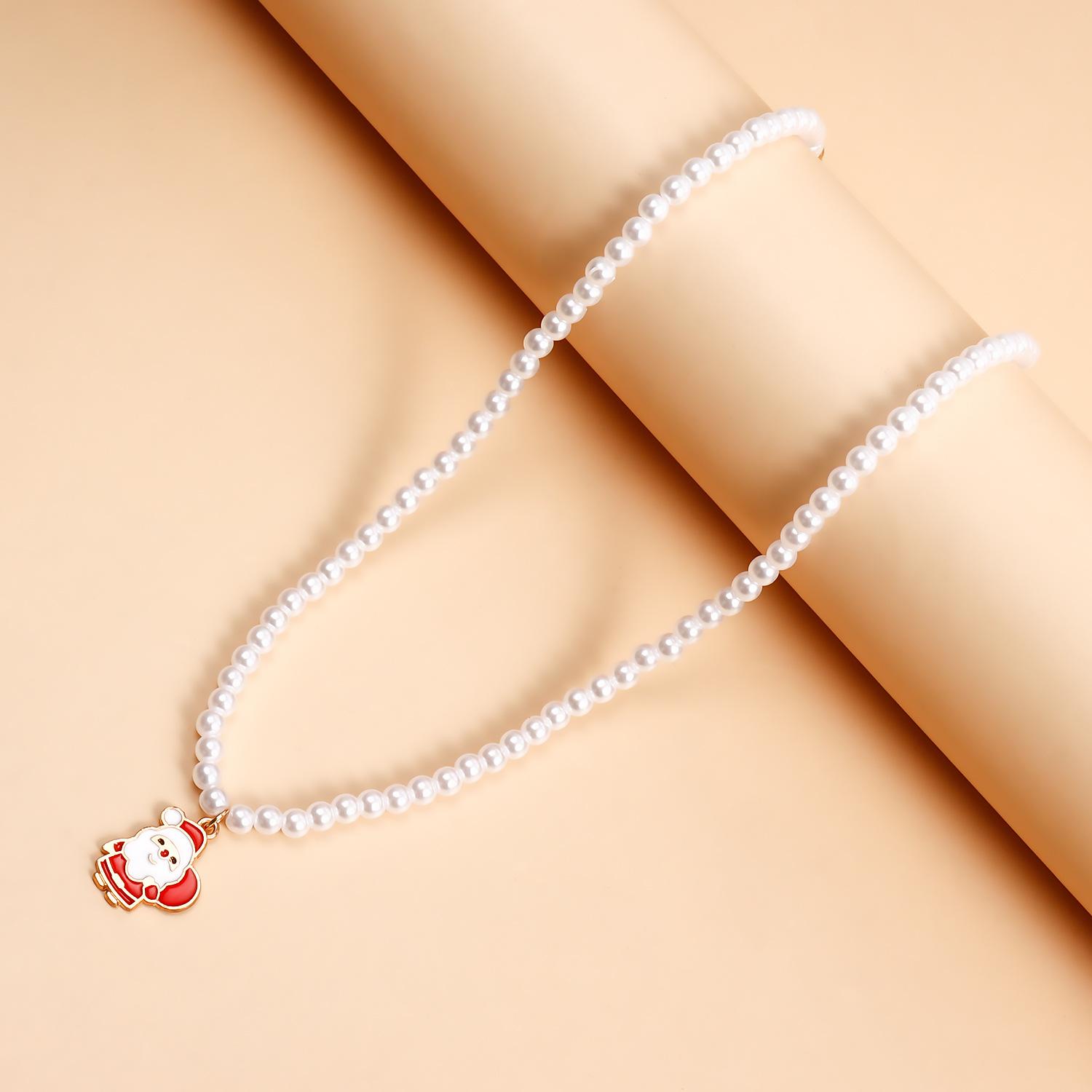 欧美圣诞毛衣链气质仿珍珠串珠链滴油雪花铃铛圣诞树配饰项链女士