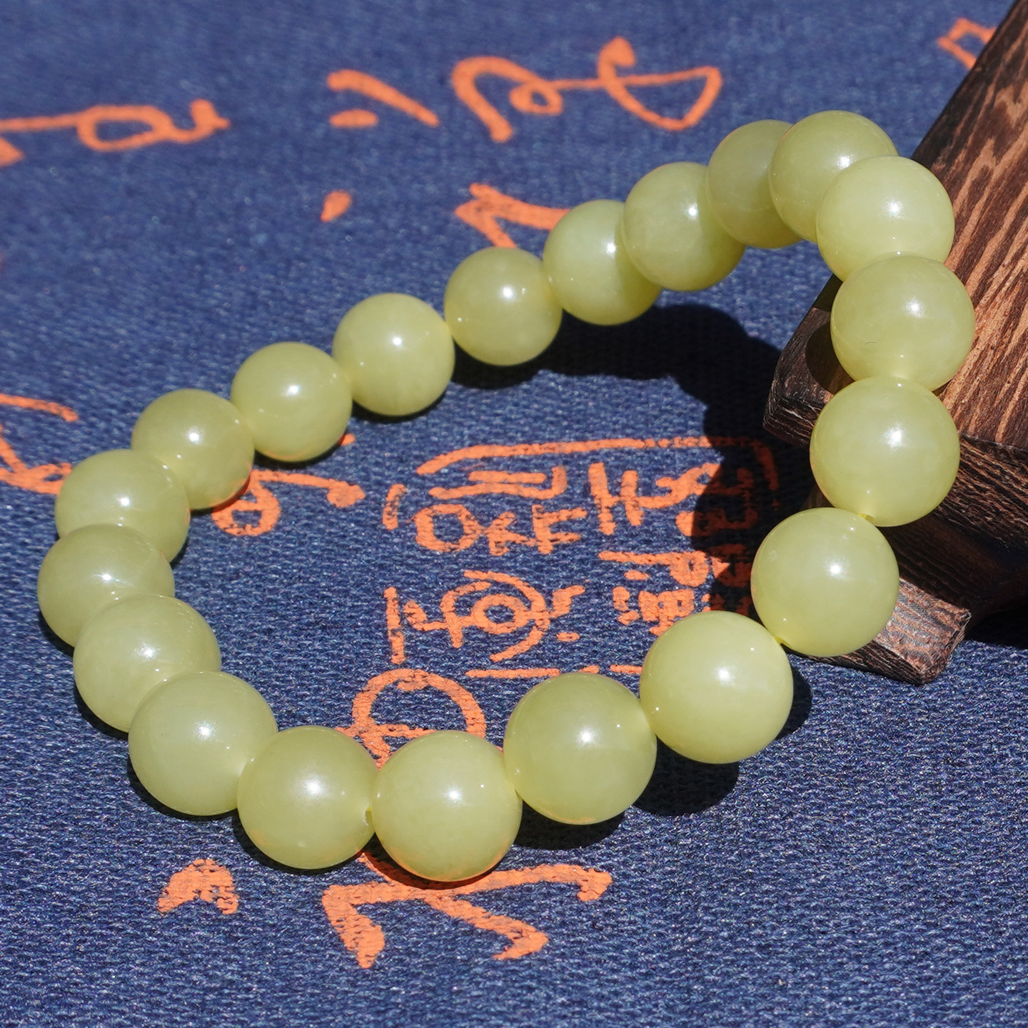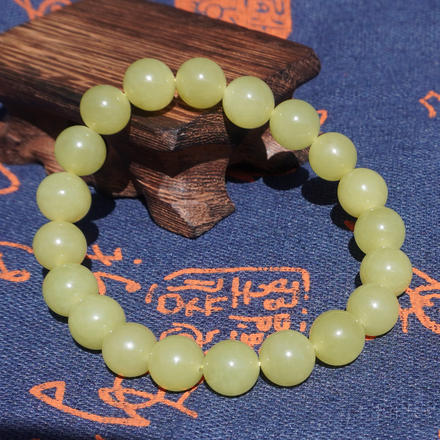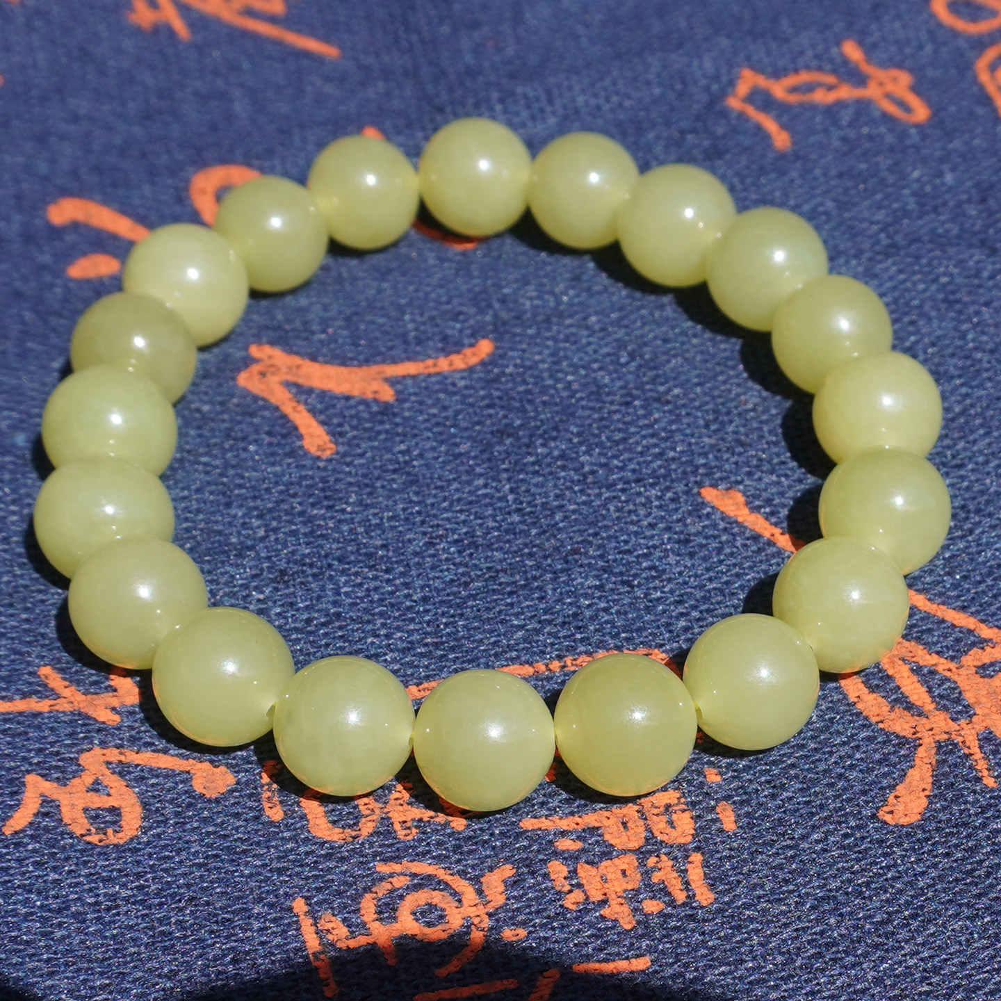 捡大漏方言和田玉新疆若羌黄色名品鸡油黄口料10mm圆珠黄玉手链A6