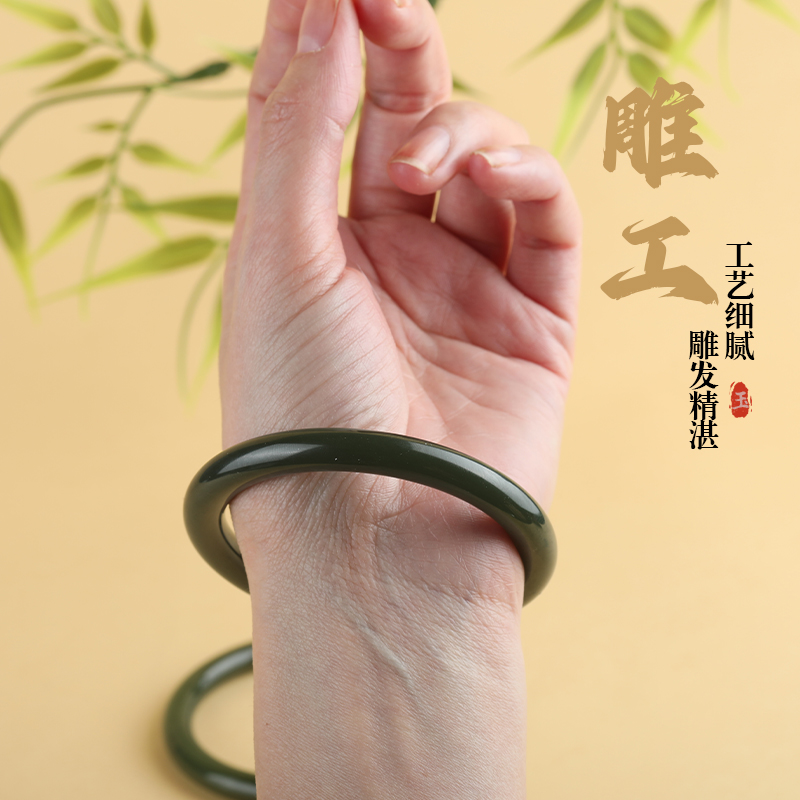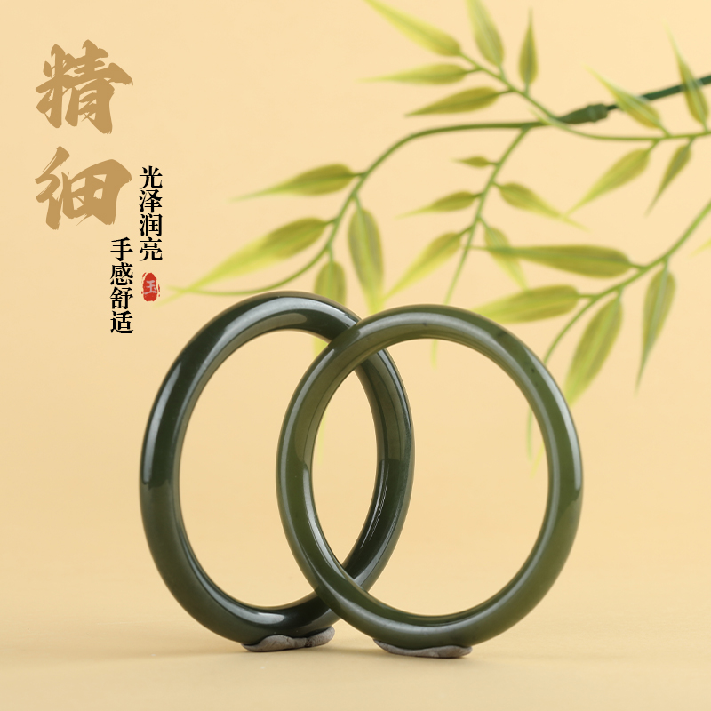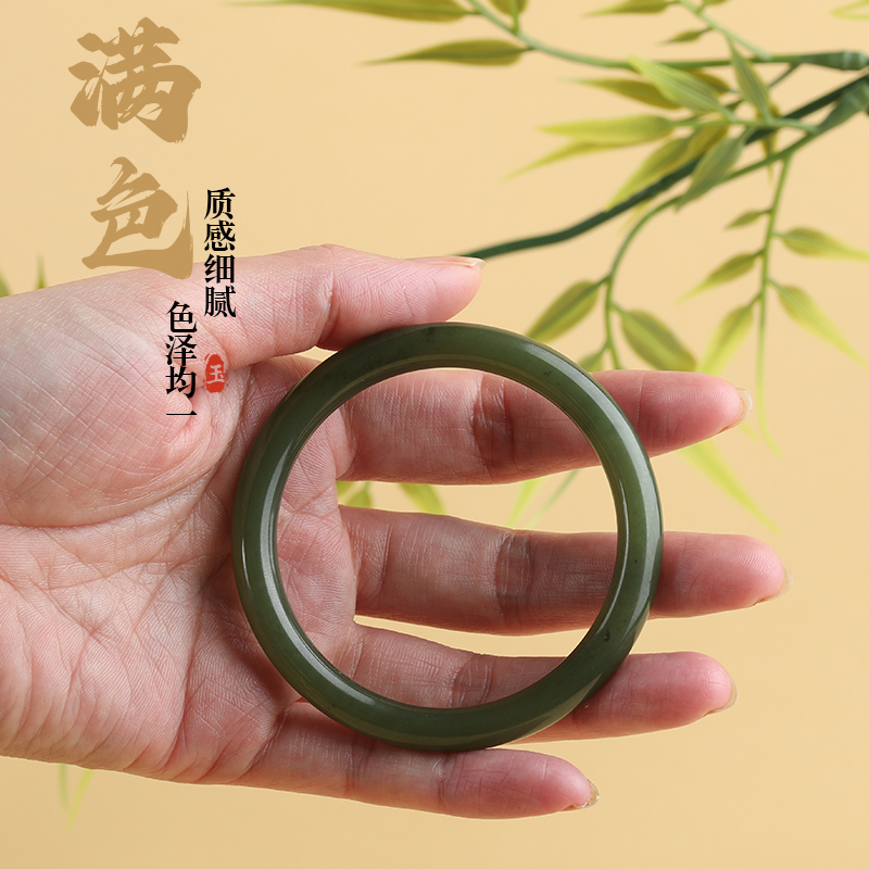 唐今玉天然和田玉手镯黄口碧玉湖水绿扁圆条玉镯女士手正品送礼物