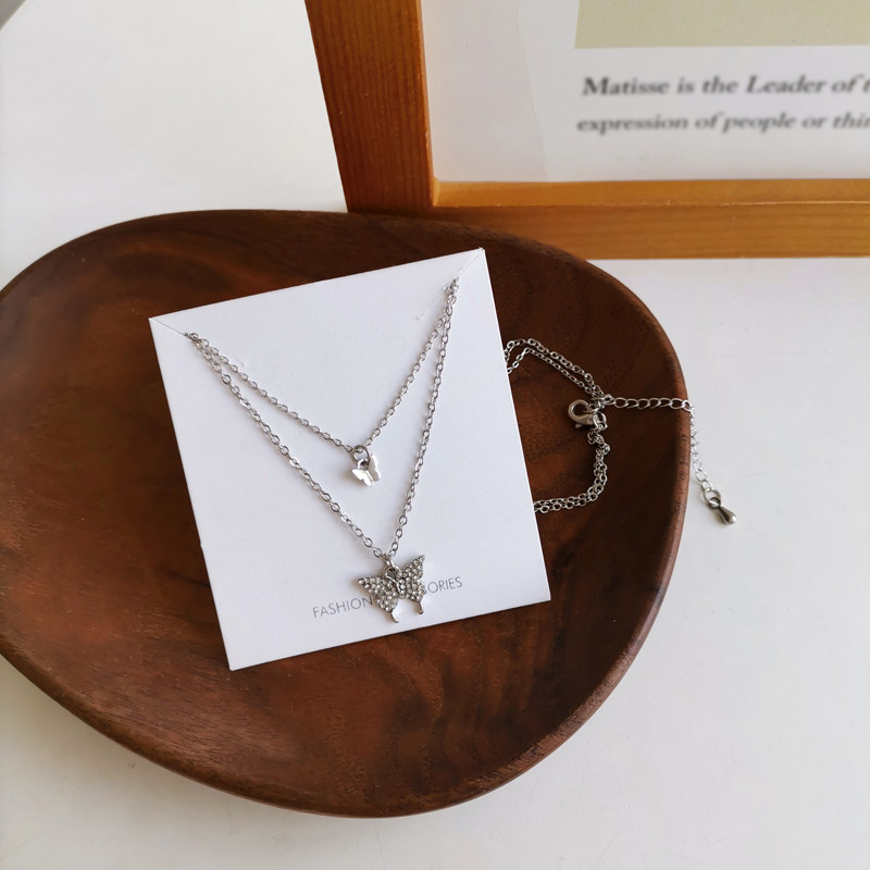 日韩国双层蝴蝶项链2021年新款女颈链气质满钻简约小众锁骨链2277