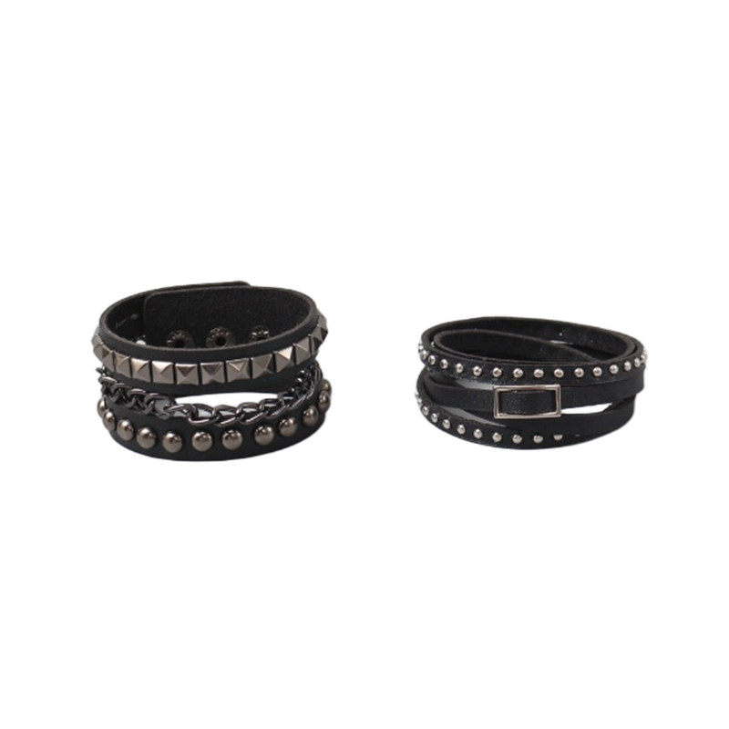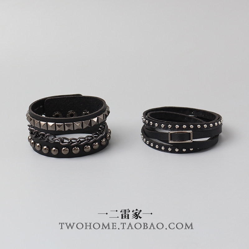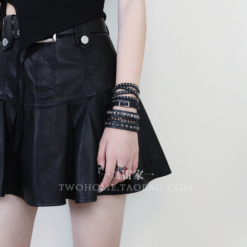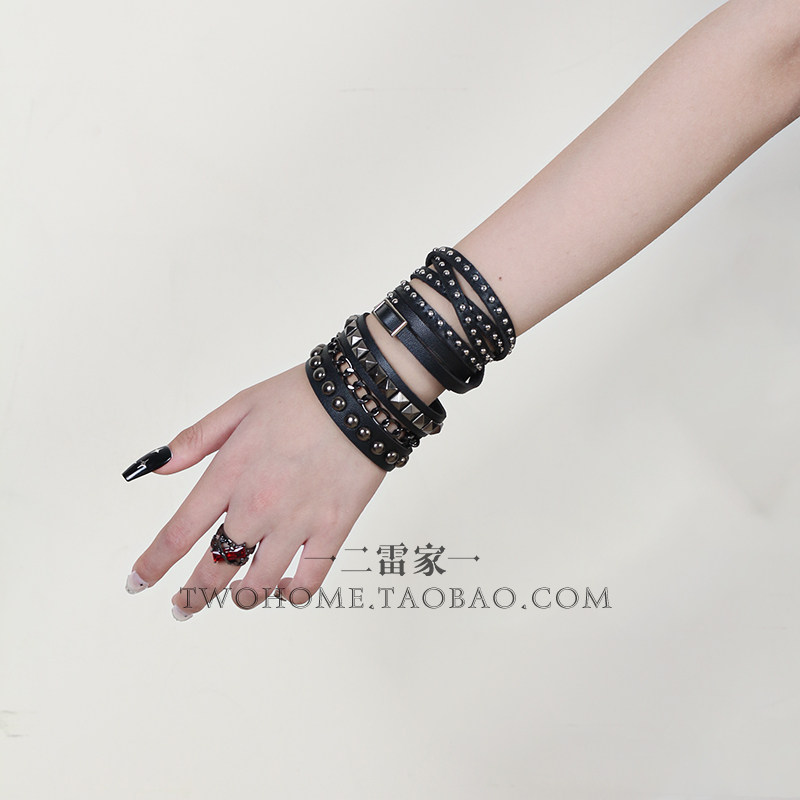 甜酷暗黑风叠戴多层朋克风链条手镯哥特风辣妹铆钉腕带手环配饰品