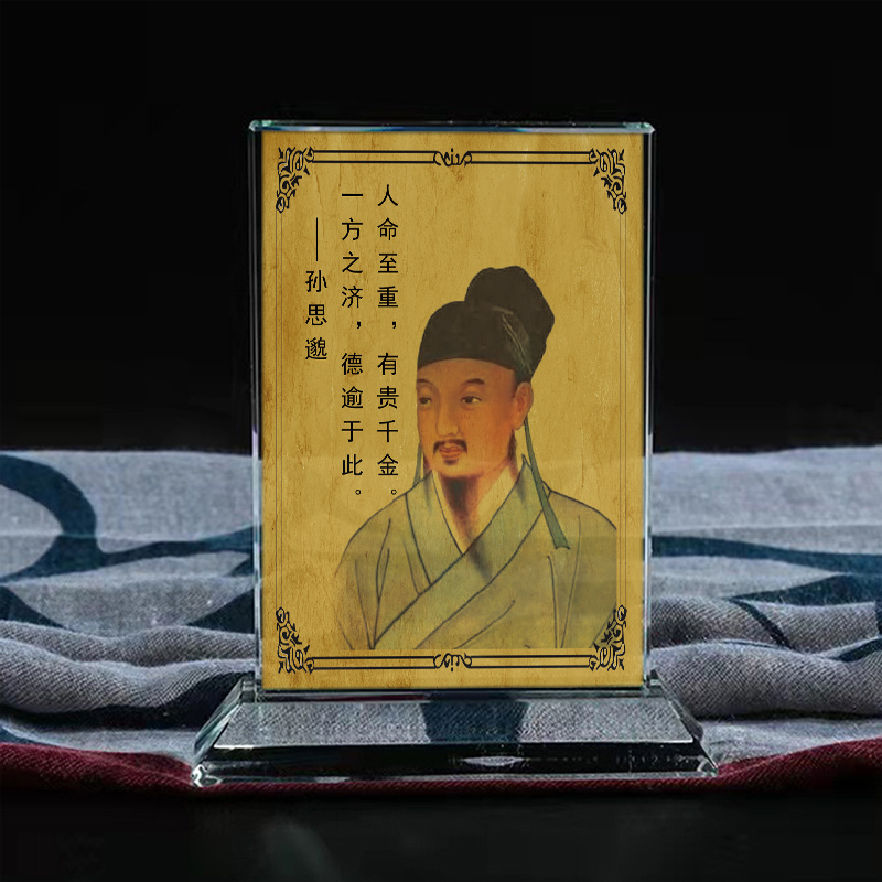 定制古代中医药王孙思邈画像水晶玻璃摆件工艺品照片文创礼品礼物