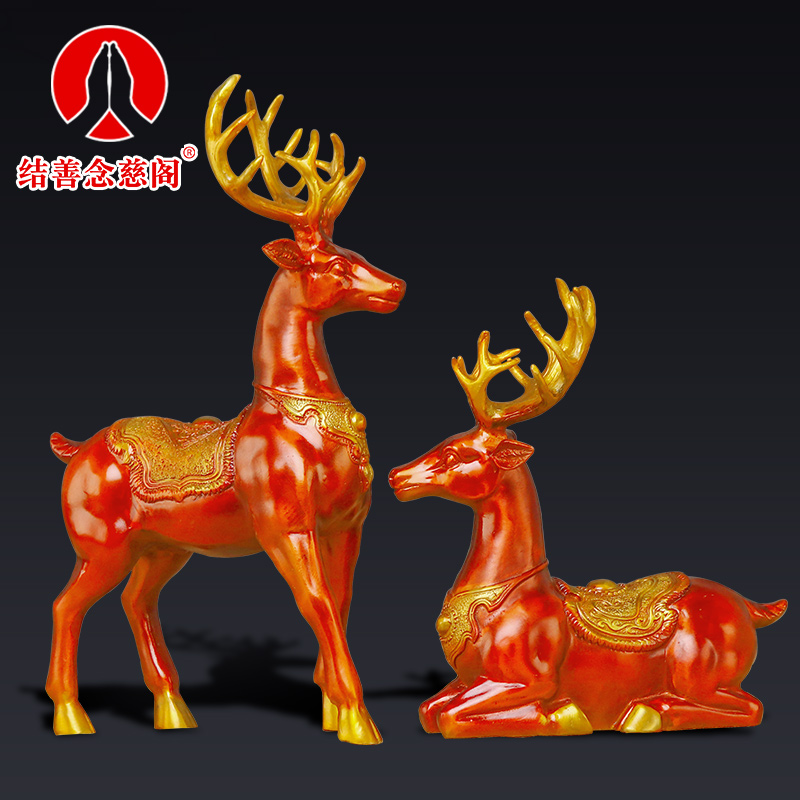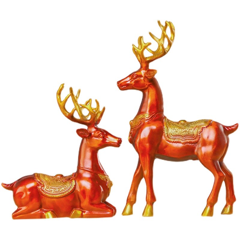 铜鹿摆件纯铜一对福鹿工艺品一鹿高升送领M导办公室客厅玄关装饰