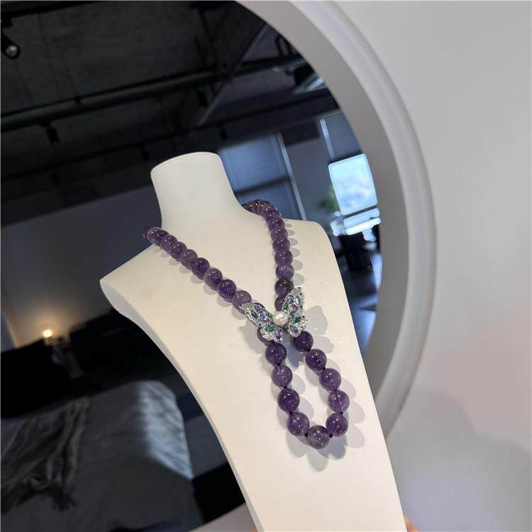 天然紫晶石项链小众设计高级感短款锁骨链女时尚气质颈链轻奢首饰