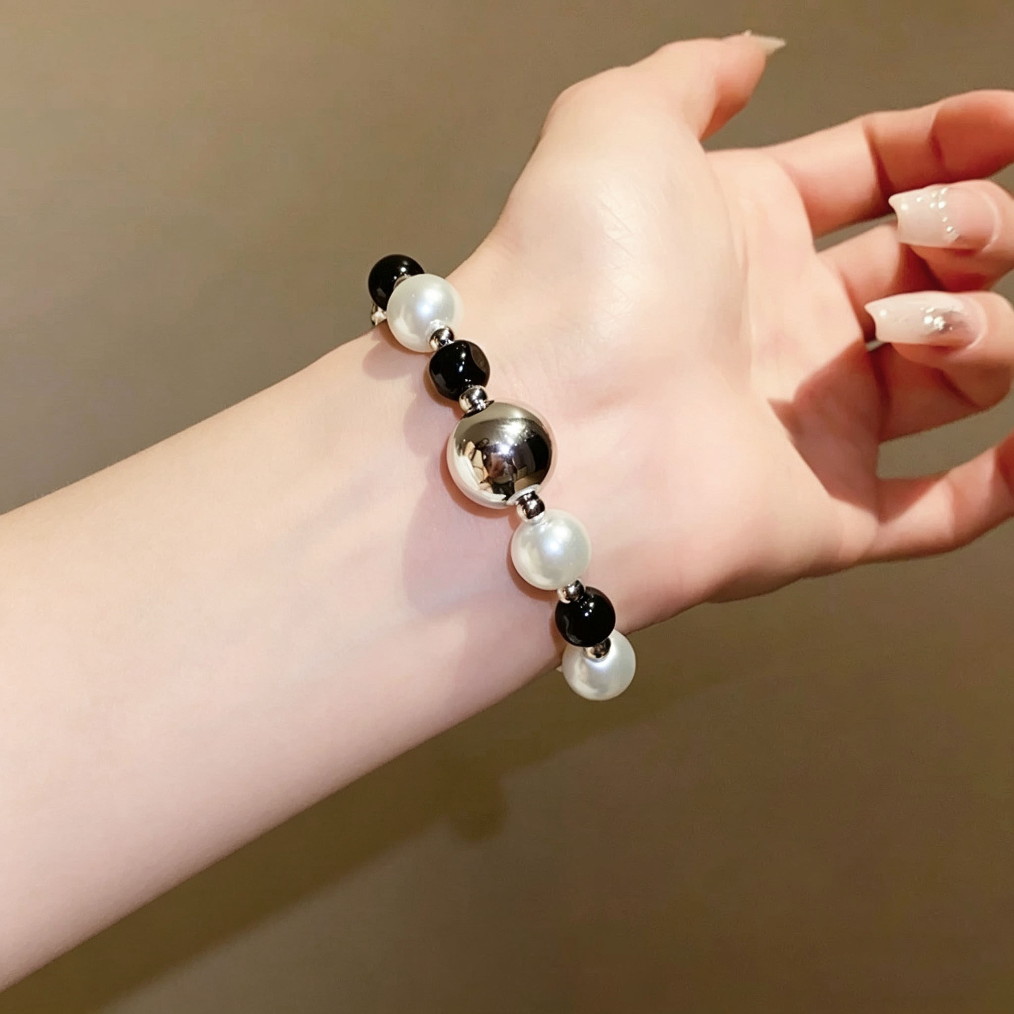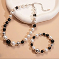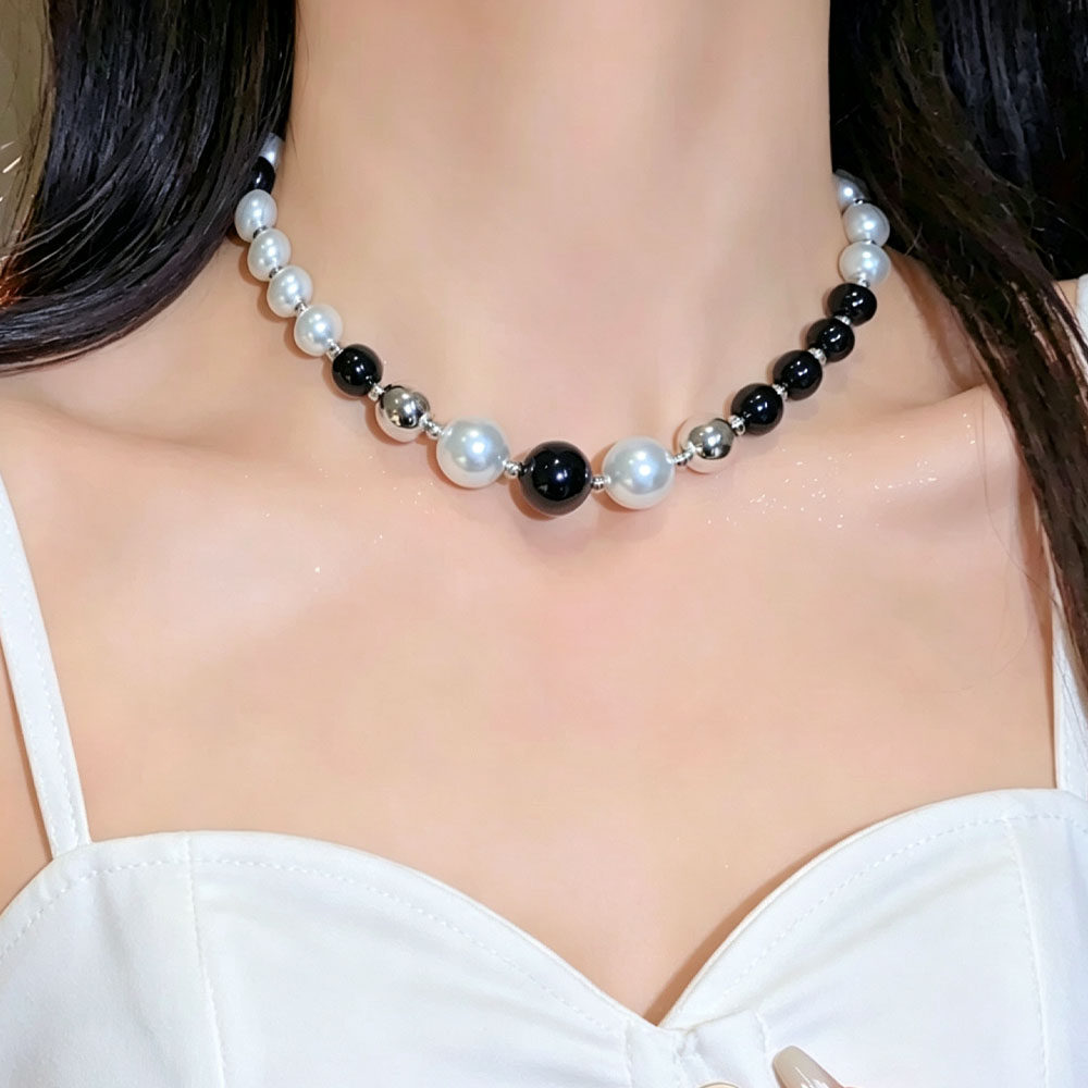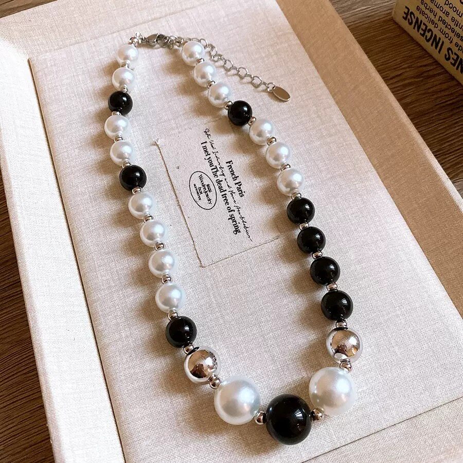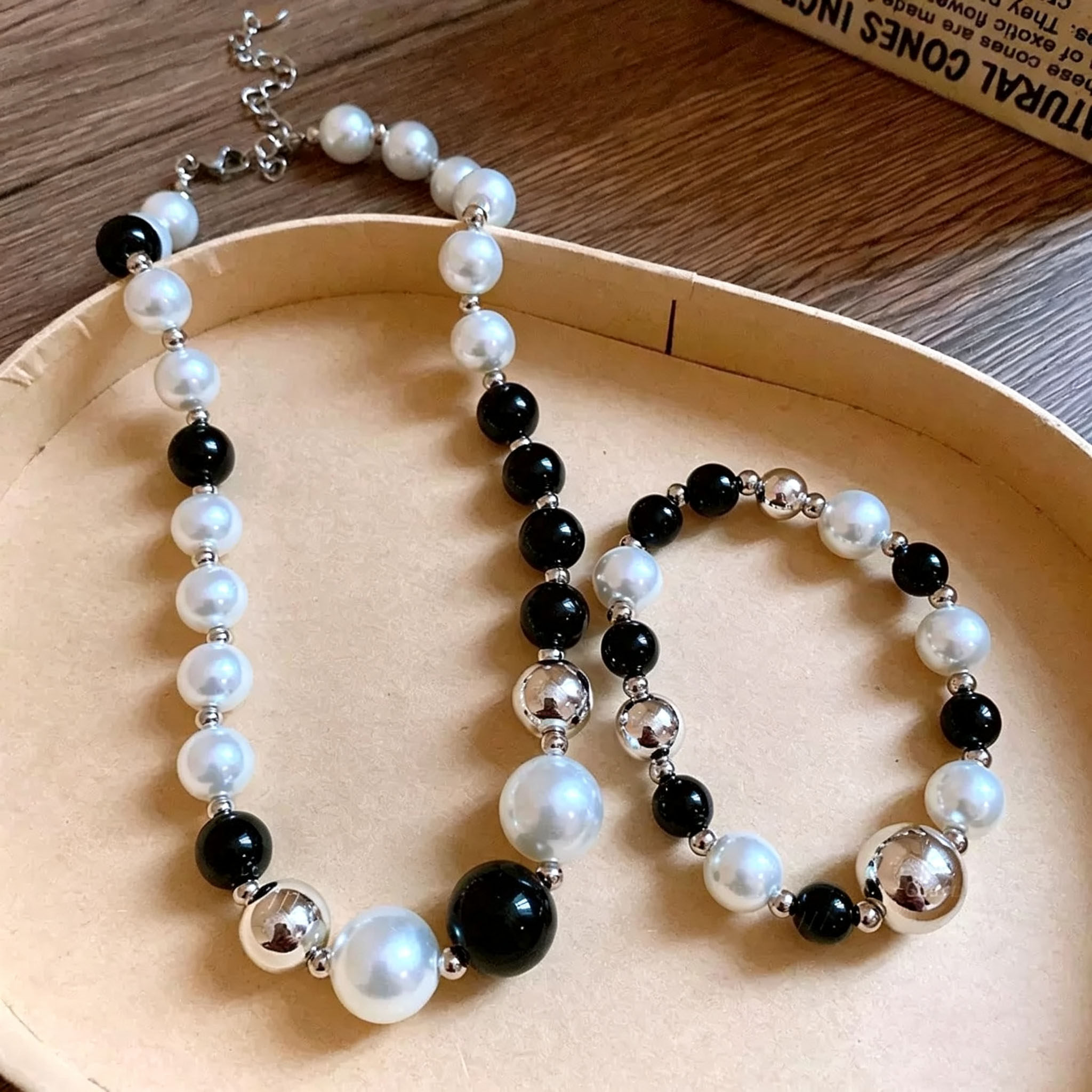简约冷淡风黑白色珍珠串珠项链手串女款高级轻奢小众手链锁骨颈链