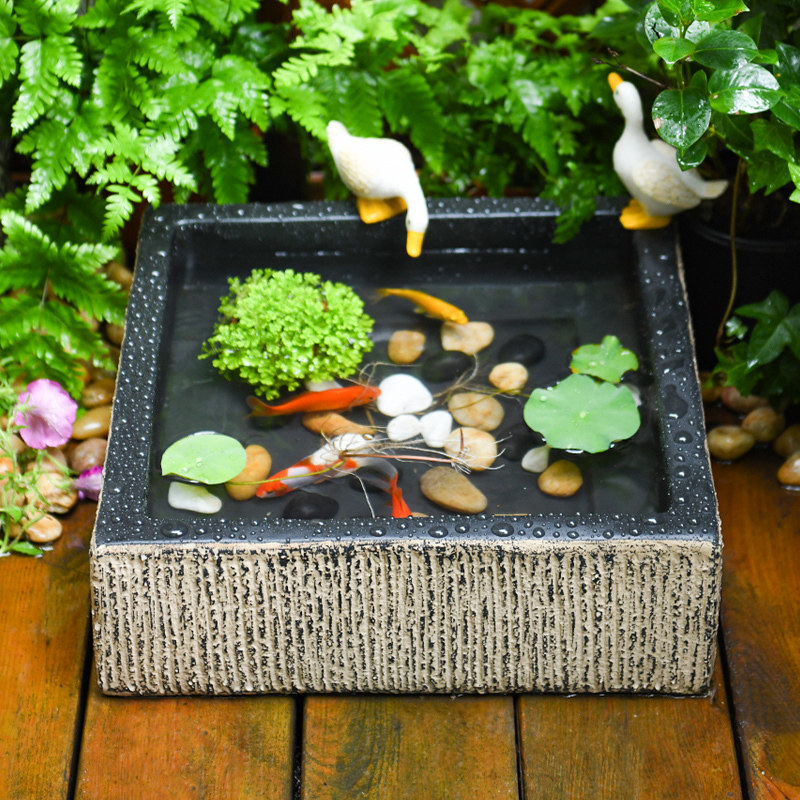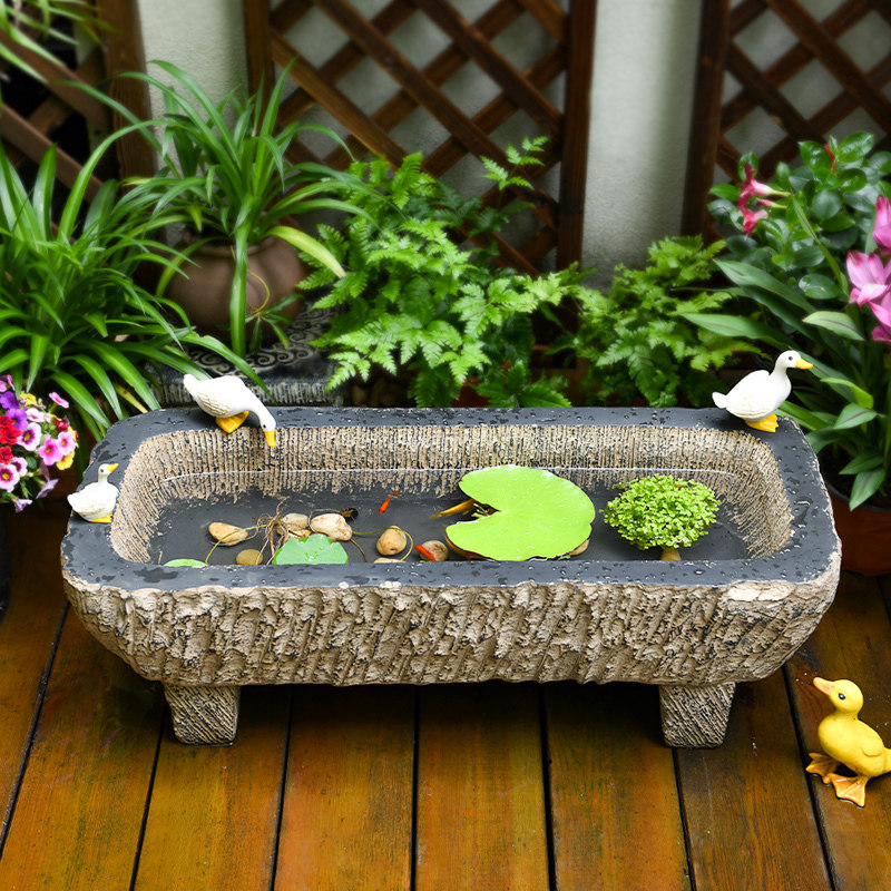 庭院小花园阳台鱼池造景摆件户外鱼缸仿石槽水景观小院天台布置