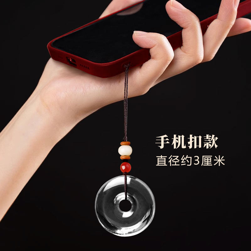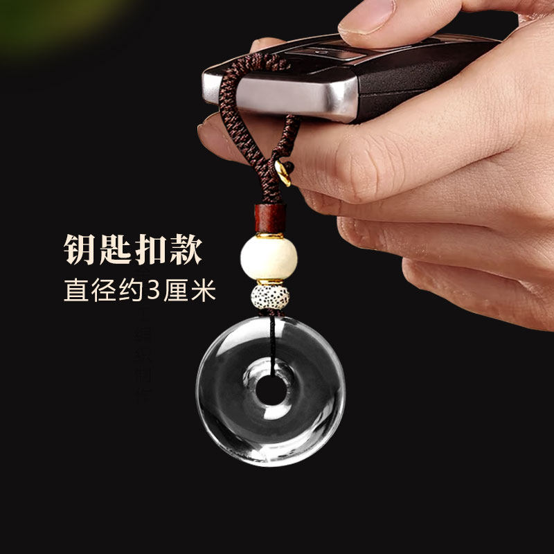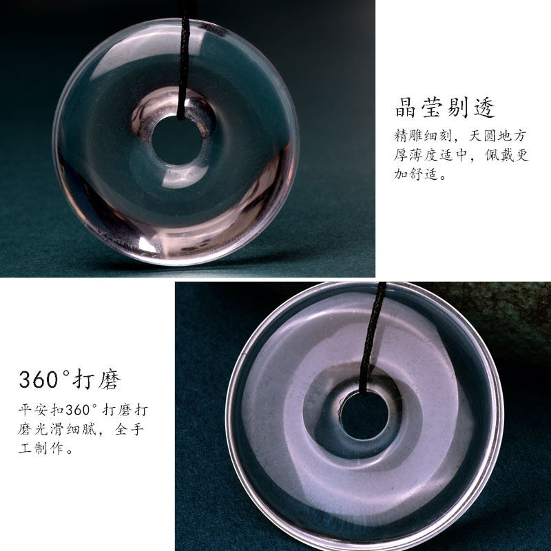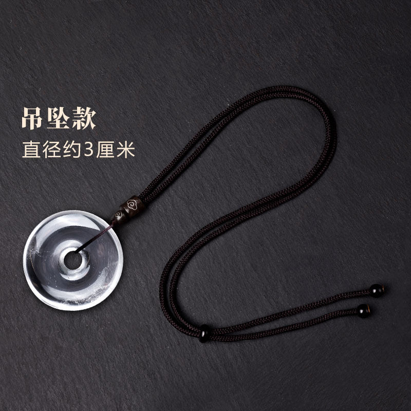 9A级白水晶平安扣吊坠冰种白水晶随身小挂件白色透明原石项链男女