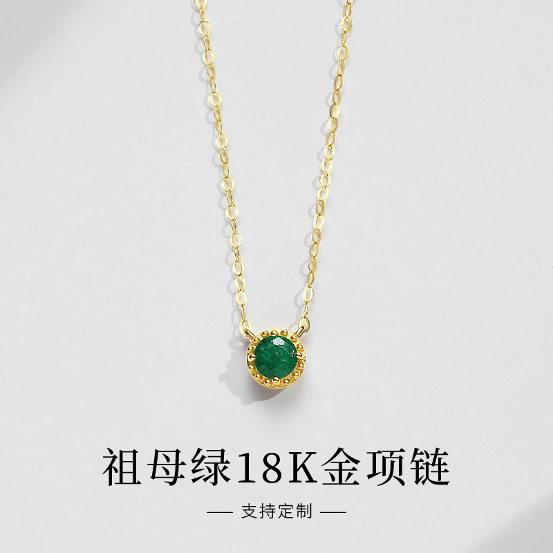 祖母绿单钻项链锁骨链女潮彩色宝石单颗挂件叠戴年轻款18K金首饰