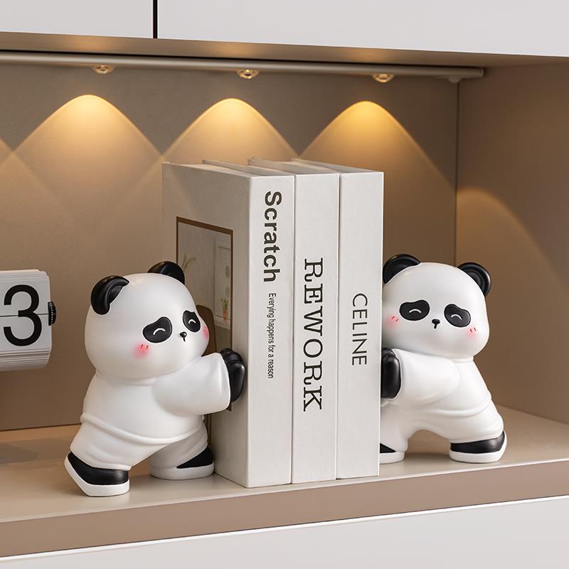 可爱熊猫书档摆件玄关客厅酒柜装饰品书柜桌面书立架轻奢高级感礼
