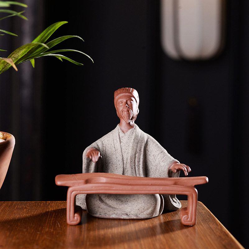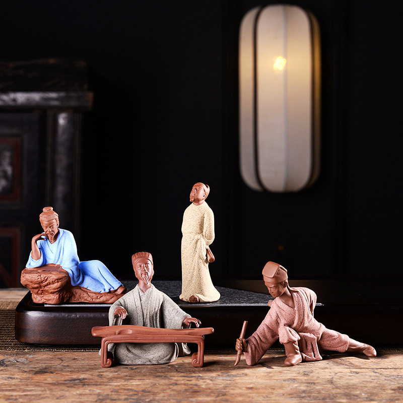 中式禅意手工紫砂人物诸葛亮李白唐伯虎桌摆件家居博古架鱼缸造景