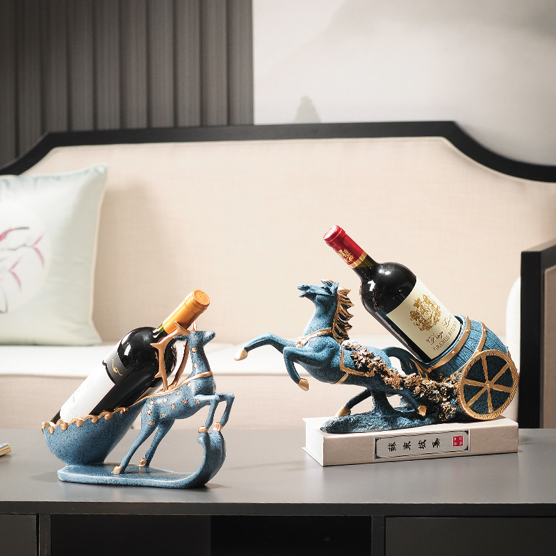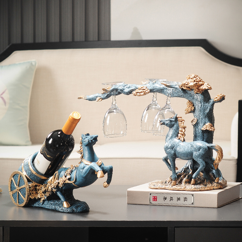 现代轻奢红酒架摆件客厅酒柜装饰品创意办公室高档柜子招财马摆设