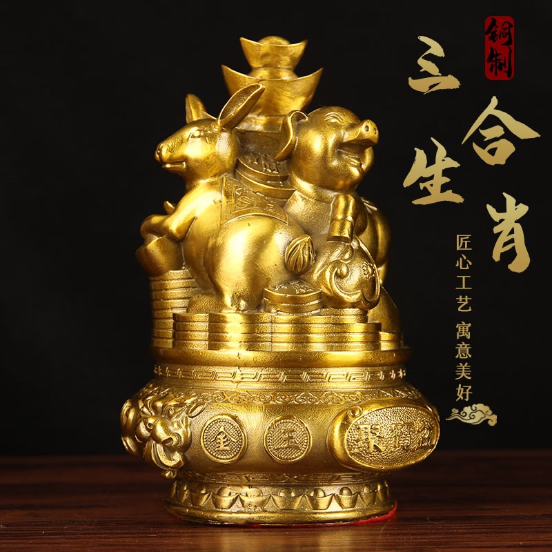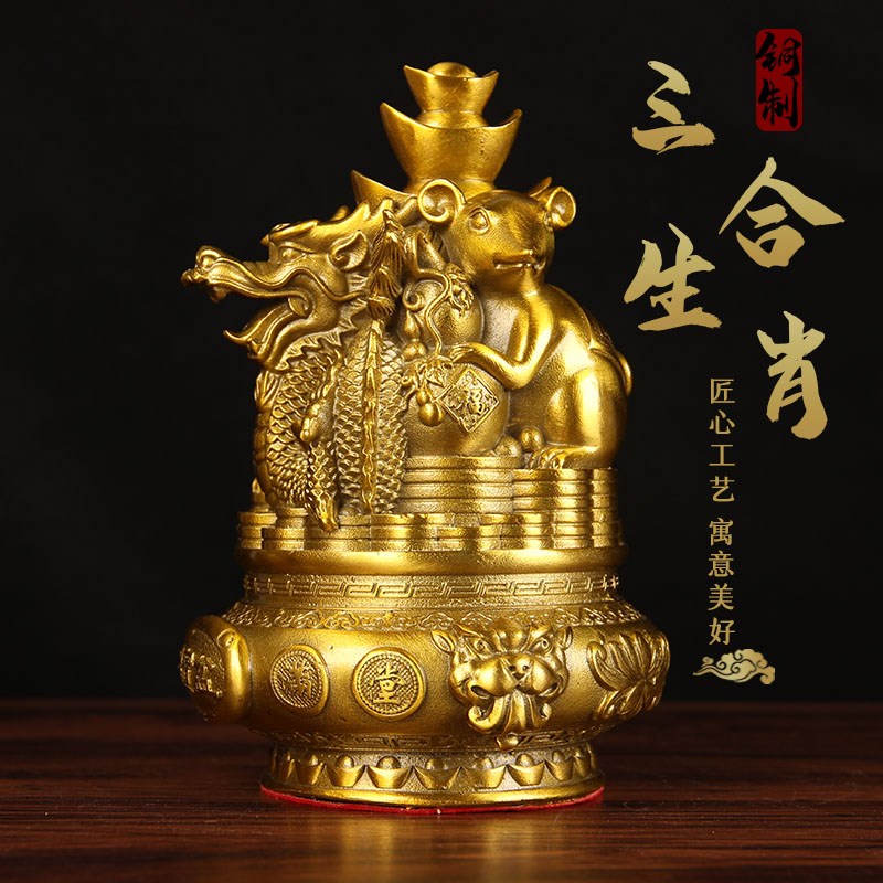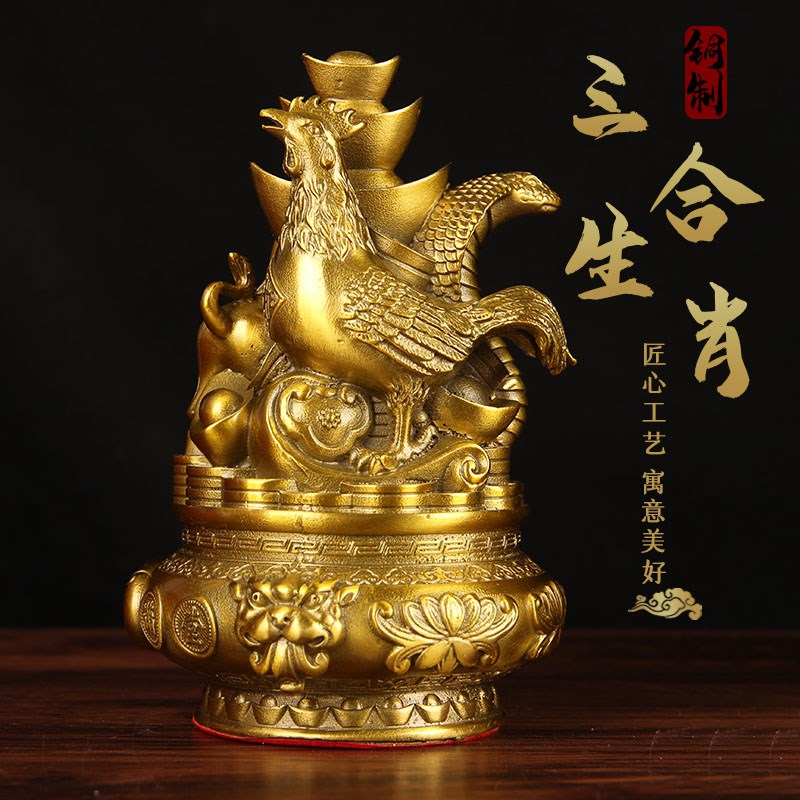 铜山河局摆件聚宝盆十二生肖工艺品贵人三合局家居柜台装饰品摆