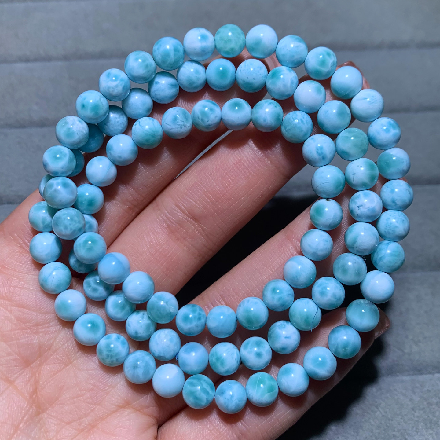 天然拉利玛海纹石三圈手链淡蓝色玉化海纹石水晶礼物饰品情侣款女