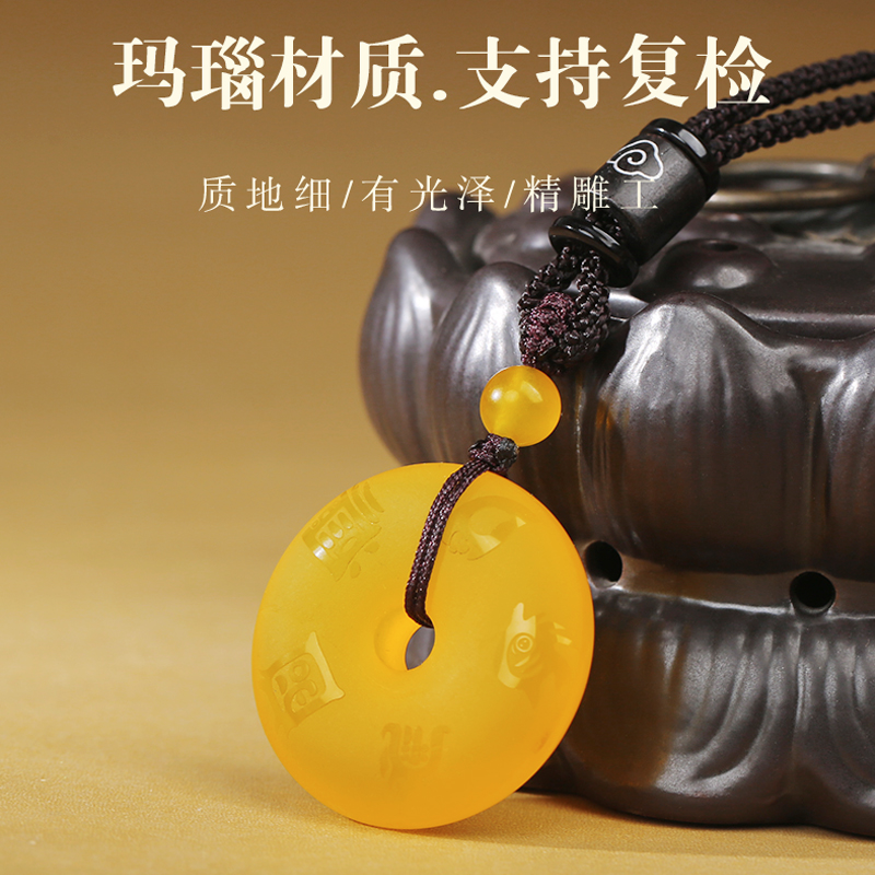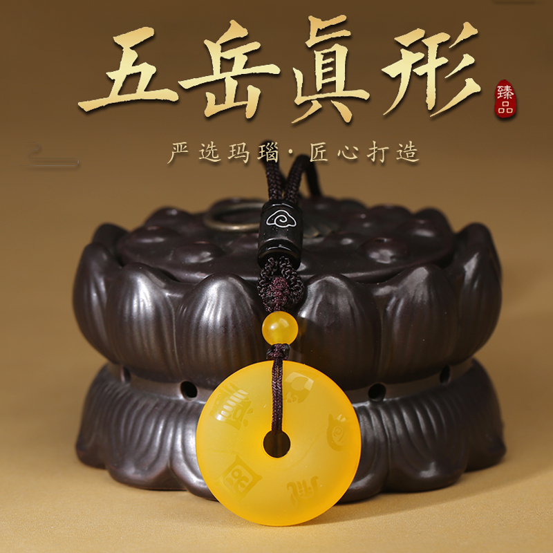 天然玛瑙五岳真形图吊坠五行补火金木水土护身符黄玛瑙平安扣钥匙