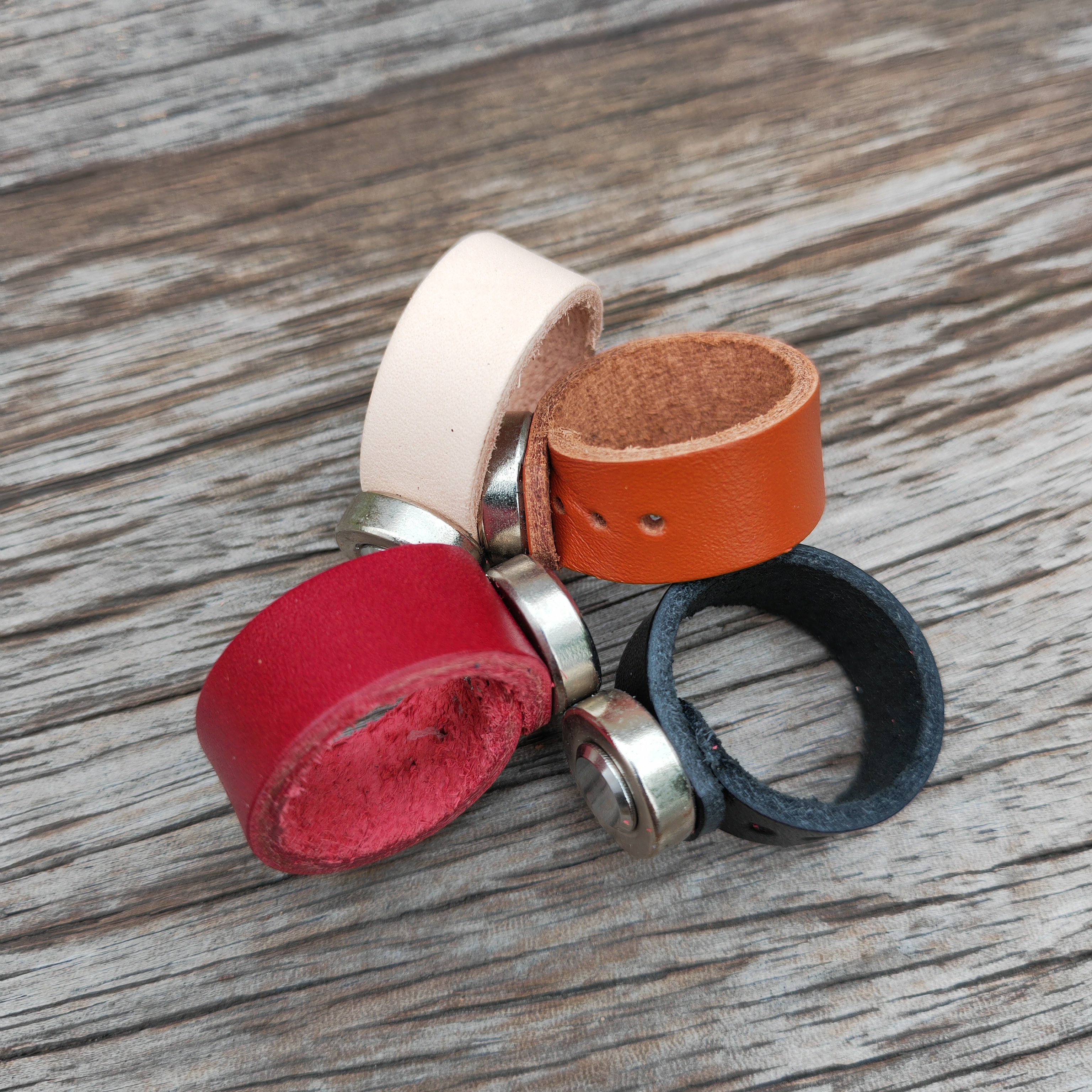 头层牛皮弹弓强磁戒指吸钢珠戒指强力磁铁吊坠户外大号磁力吸力
