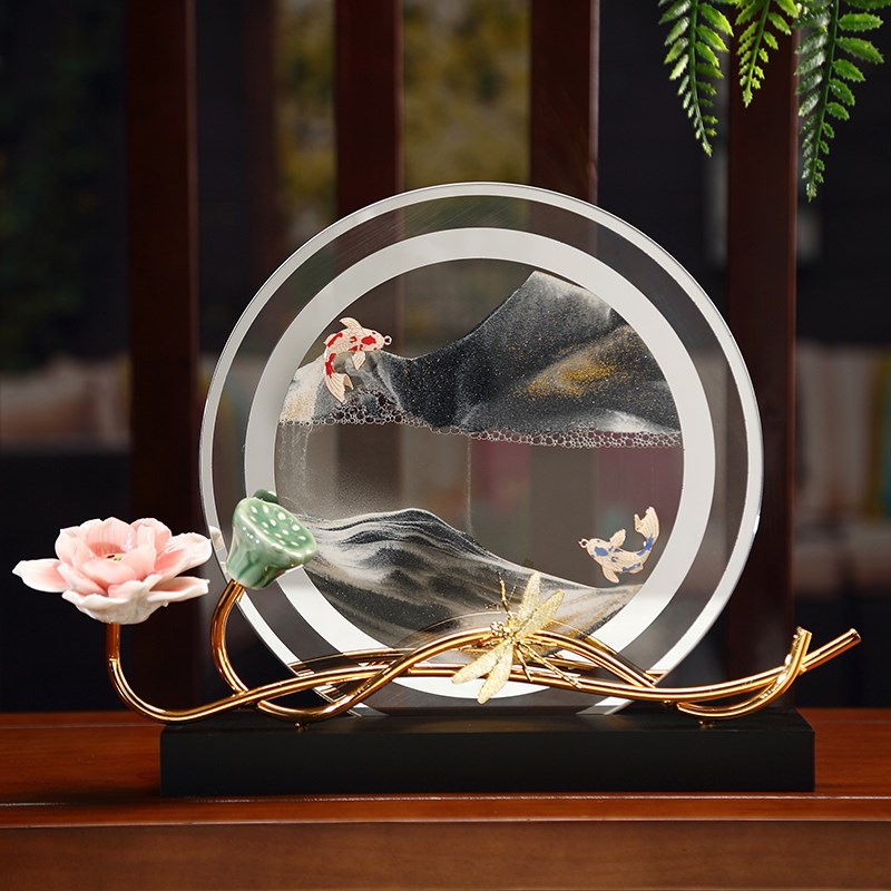 荷塘月色高档创意流沙画沙漏摆件客厅玄关酒柜博古架桌面装饰礼物