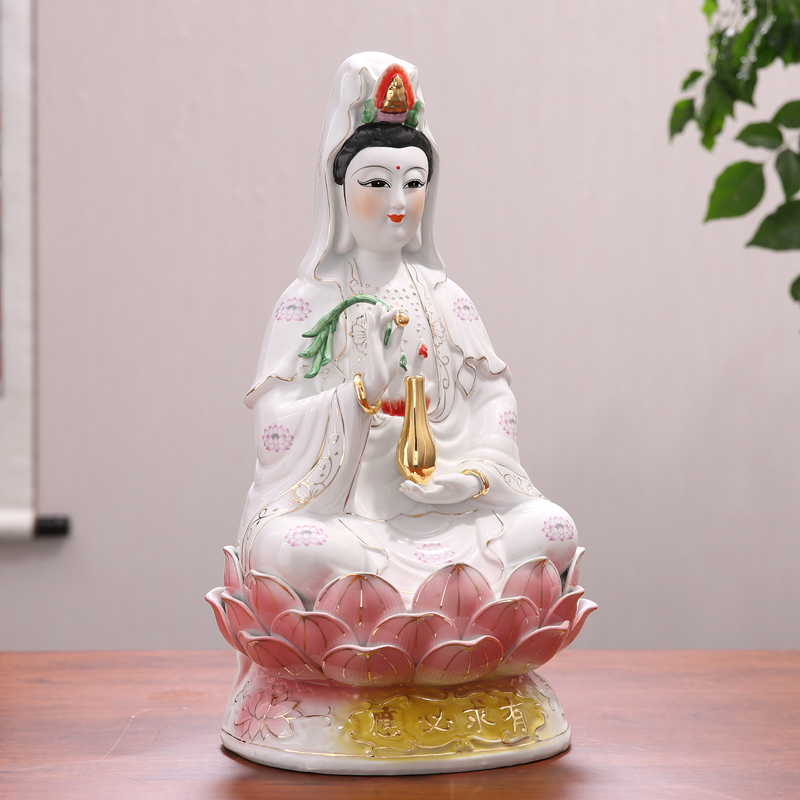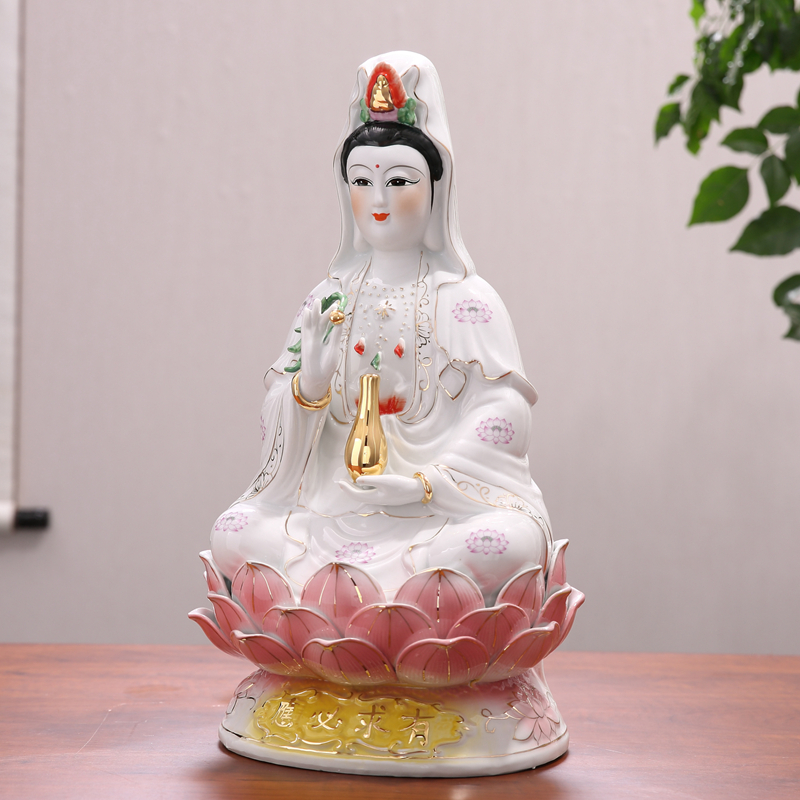 观音菩萨家用坐莲观音家用中式新居摆件陶瓷南海观世音菩萨像