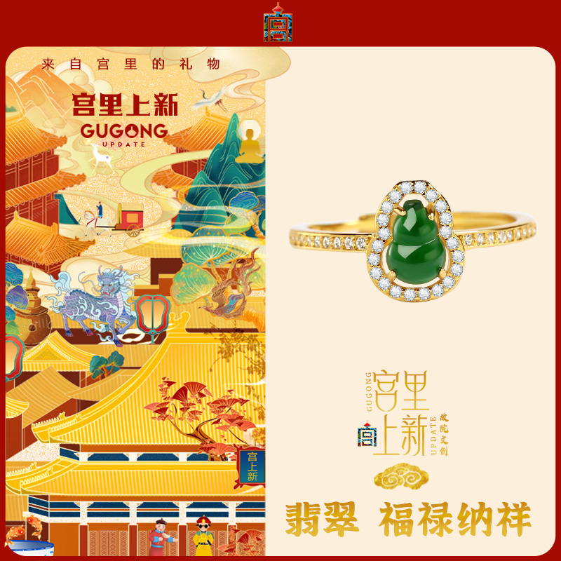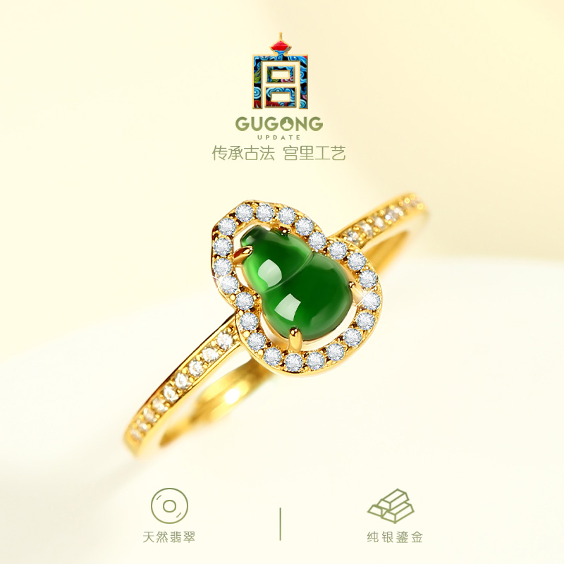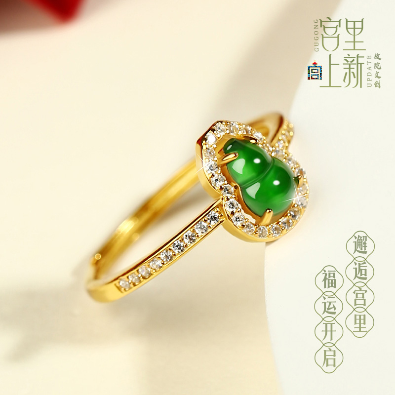 宫里上新翡翠戒指女玉石葫芦纯银宝石招财旺财指环生日礼物送妈妈