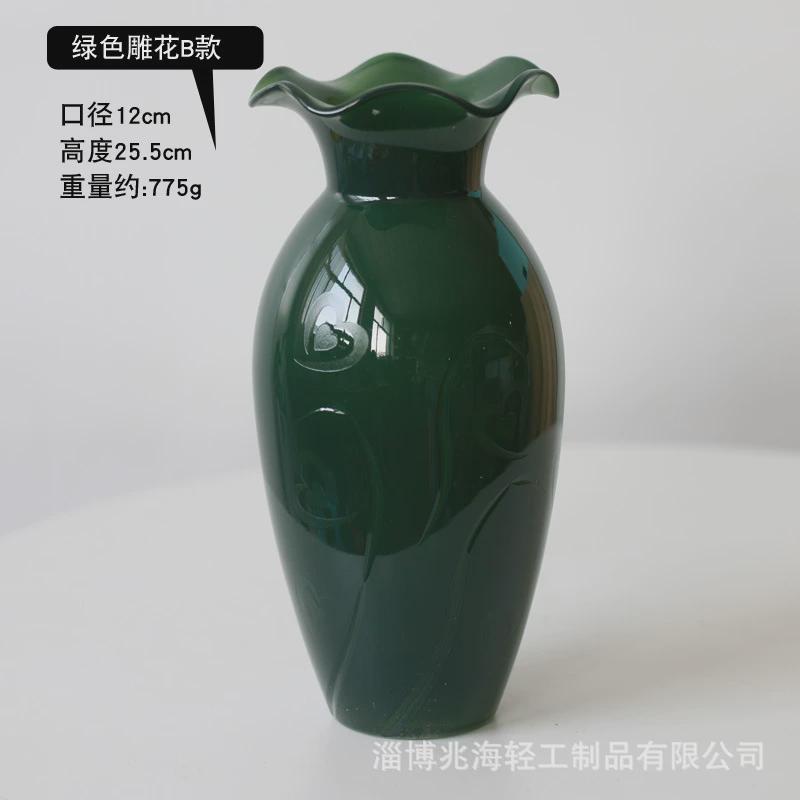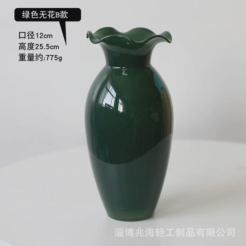 中古法式黑色水培花瓶轻奢荷叶边墨绿高级感客厅插花餐桌玻璃花瓶