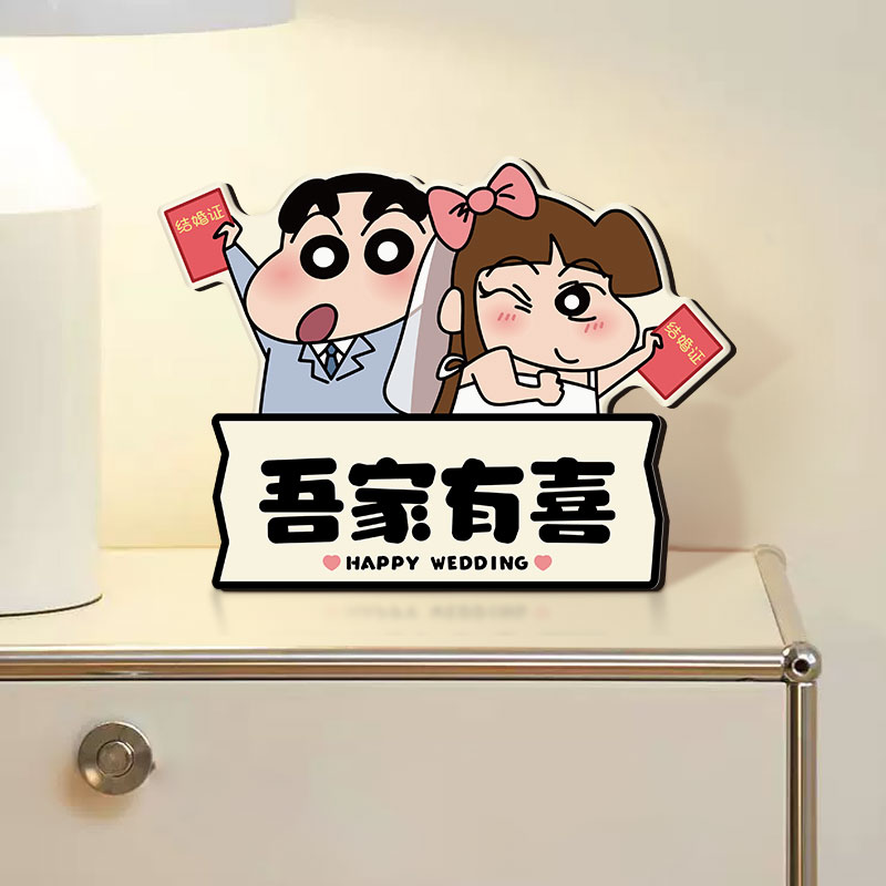 蜡笔小新卡通喜字情侣订婚摆台求婚结婚婚房布置玄关装饰摆件礼物