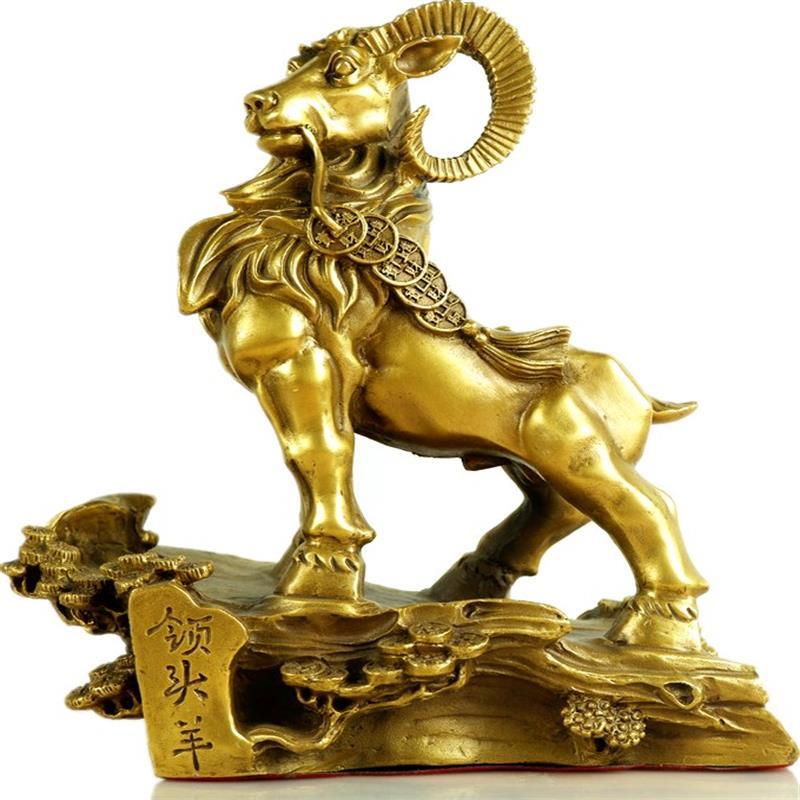 铜羊摆件招财风水纯铜领头羊摆件生肖羊办公室客厅工艺品大号