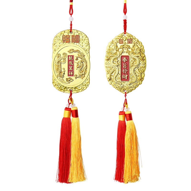 令牌许愿牌中式挂件家居饰品龙凤呈祥奉旨发财金属吊坠摆件工艺品