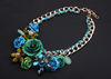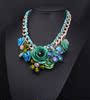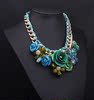 欧美大牌 时尚彩绿色花朵宝石棉绳编织项链短锁骨链 女夸张配饰品