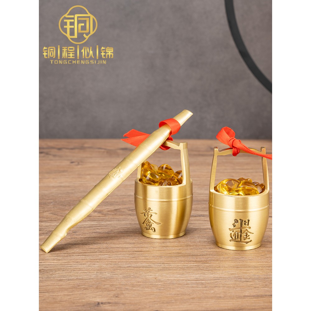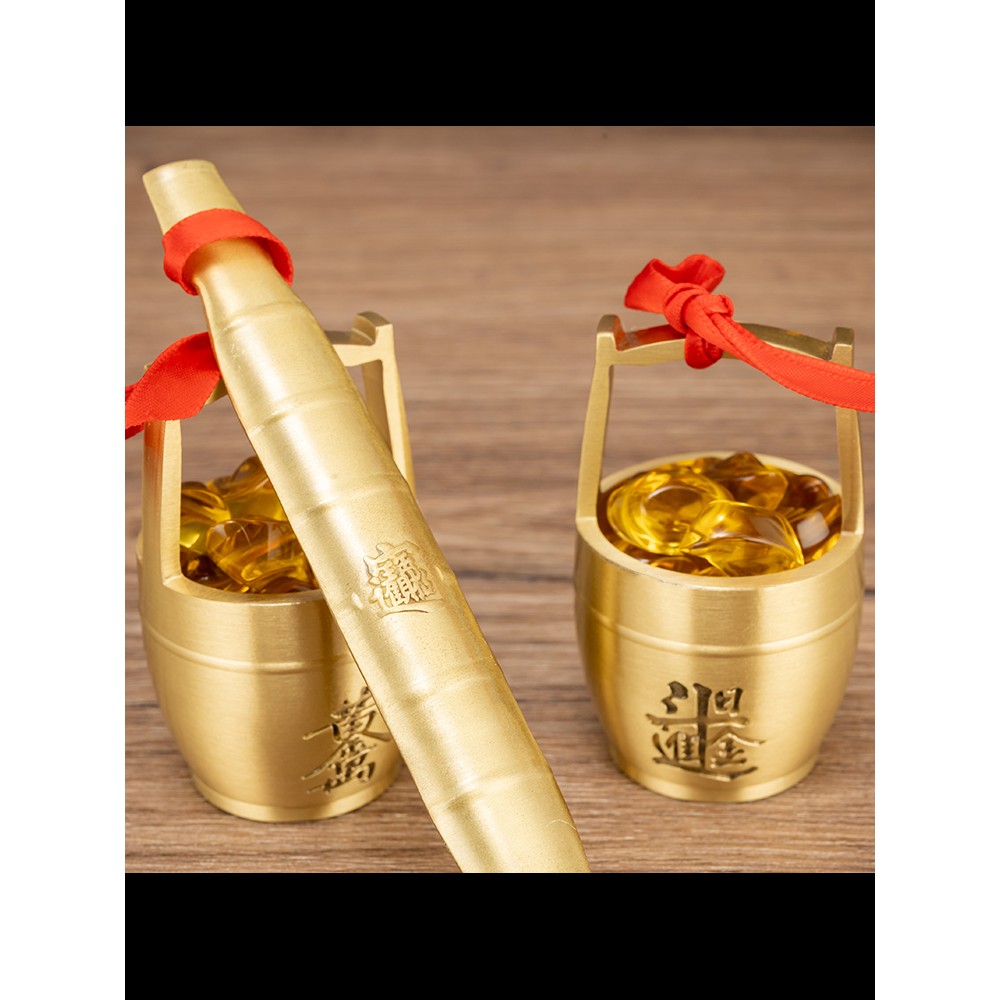 双面刻字一桶金摆件纯铜招财水桶家用客厅聚宝盆乔迁之喜装饰新居