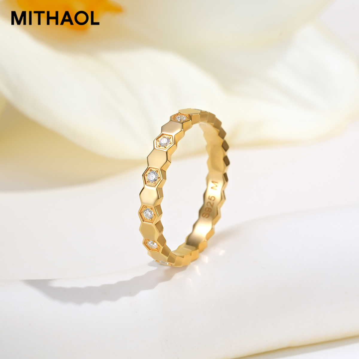 【宋慧乔同款】蜂巢戒指女 轻奢小众高级感多边形几何指环银镀18k