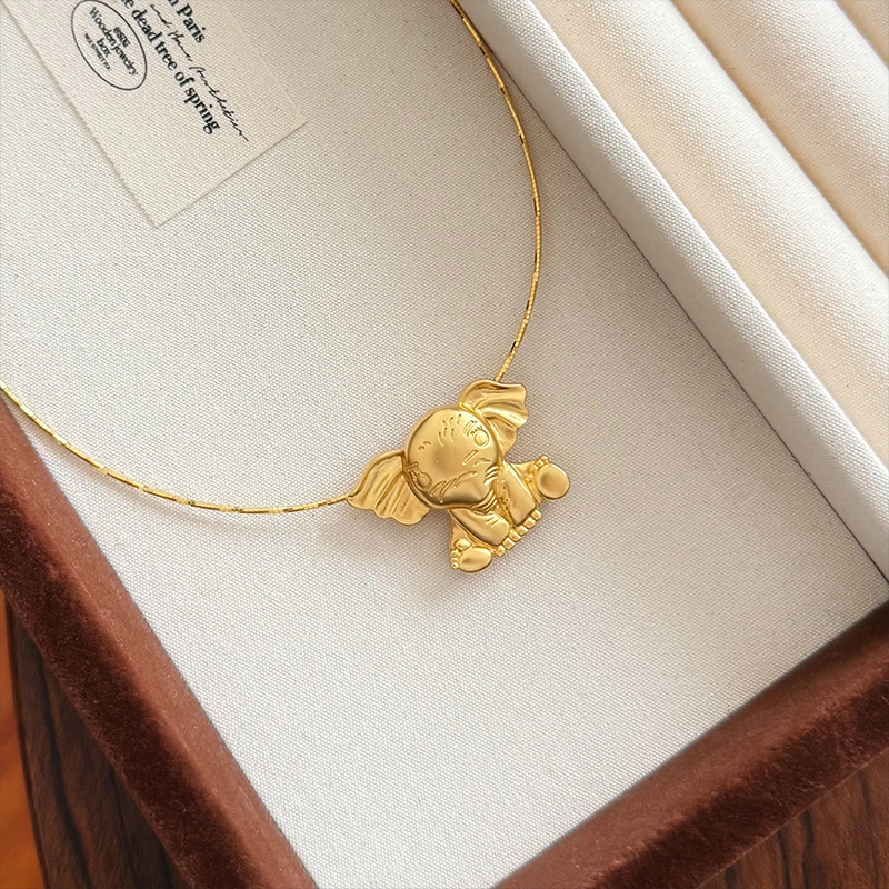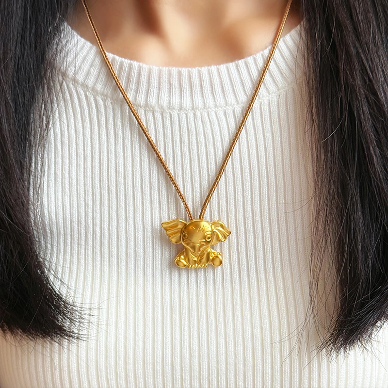 小飞象项链古法沙金小象宝宝项链胸针扣手牌三用饰品女新中式国风