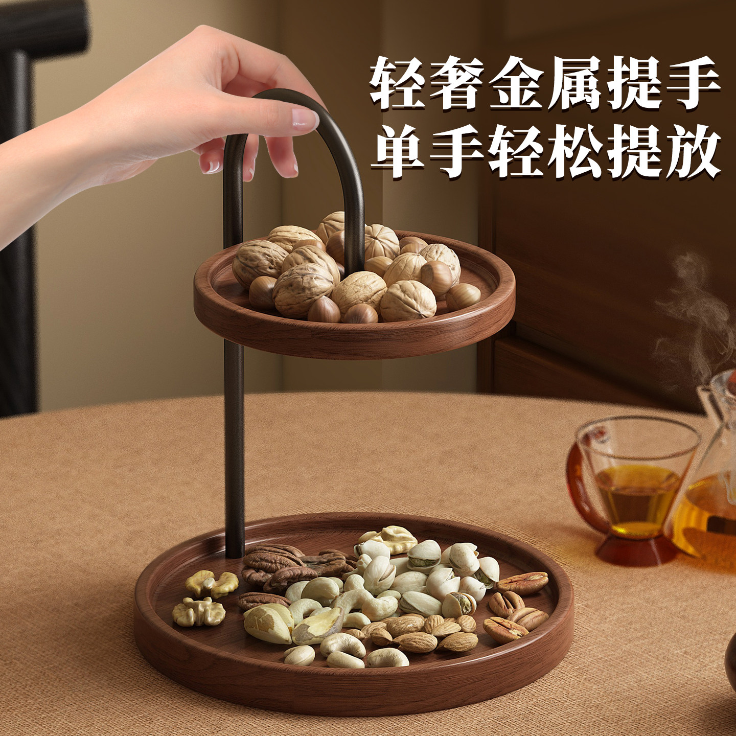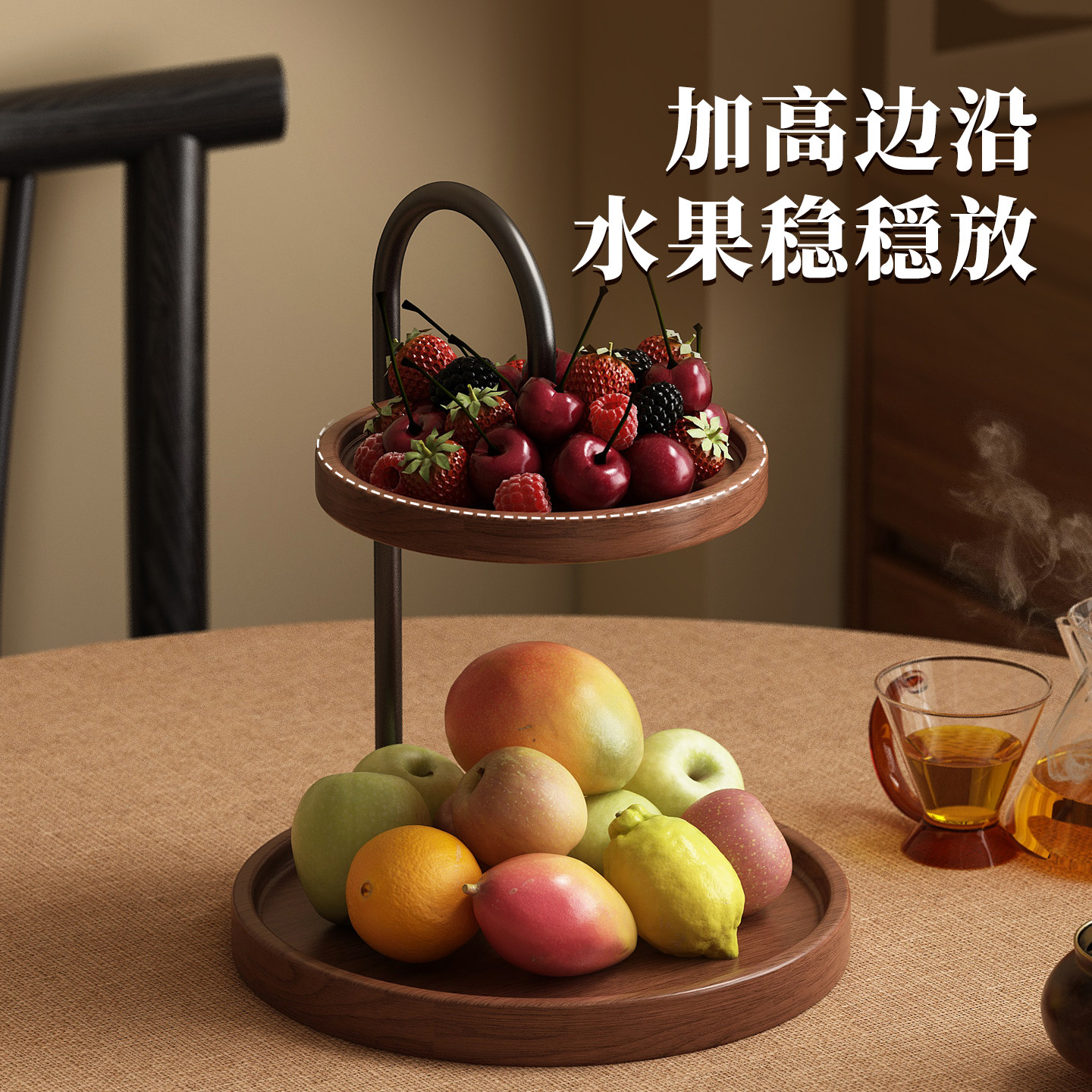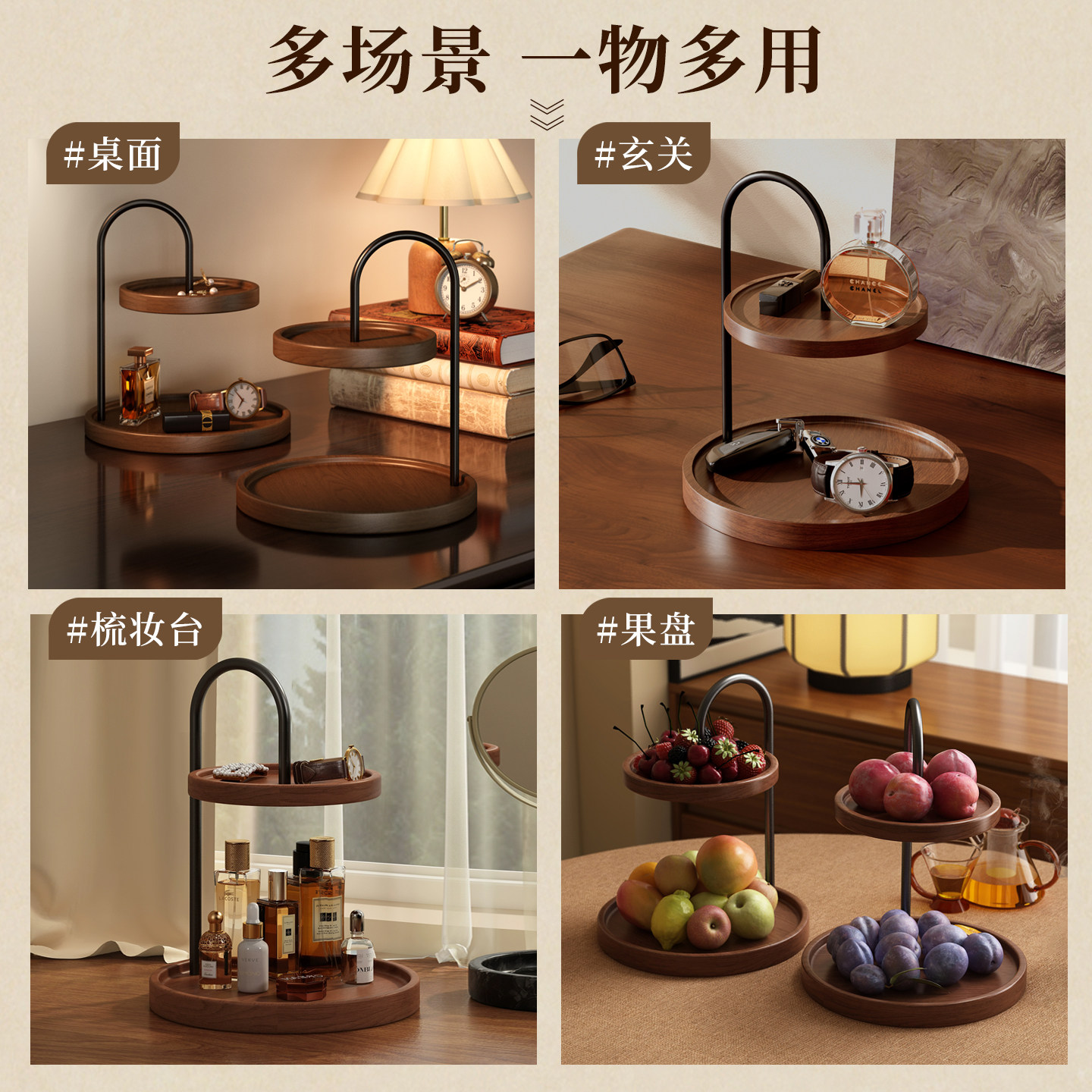 实木果盘桌面双层零食糖果摆放架茶几点心托盘玄关摆件装饰置物架