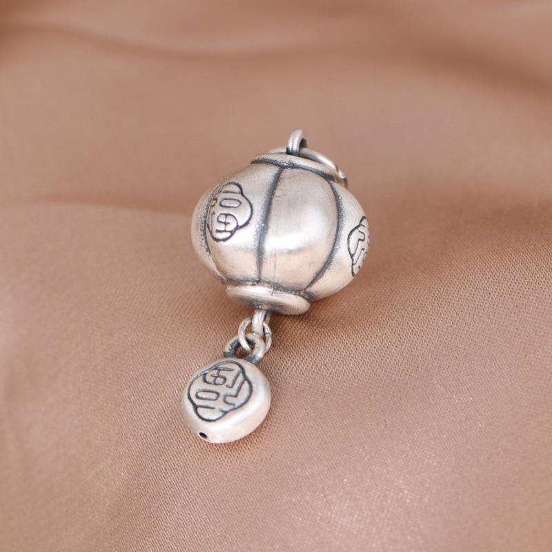 网红- 足银吊坠 复古文艺福字南瓜珠灯笼风项链坠手工吊饰