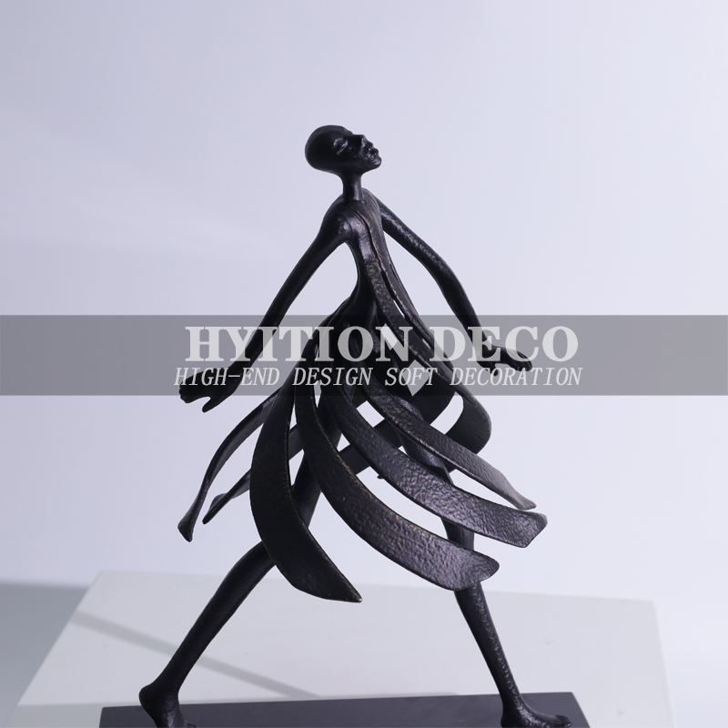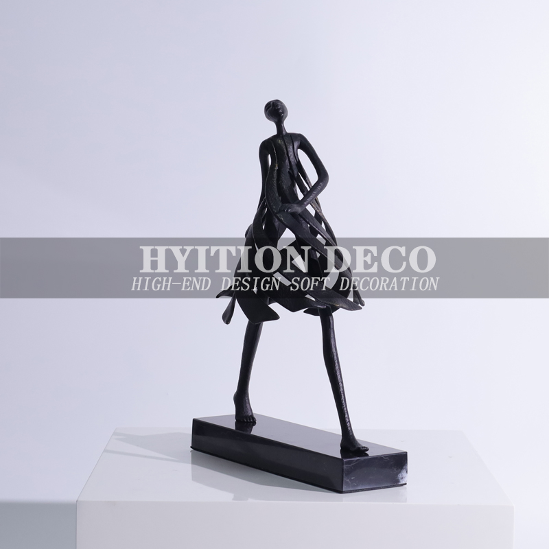 现代极简轻奢黑色金属人物雕塑摆件客厅玄关样板房售楼处软装饰品