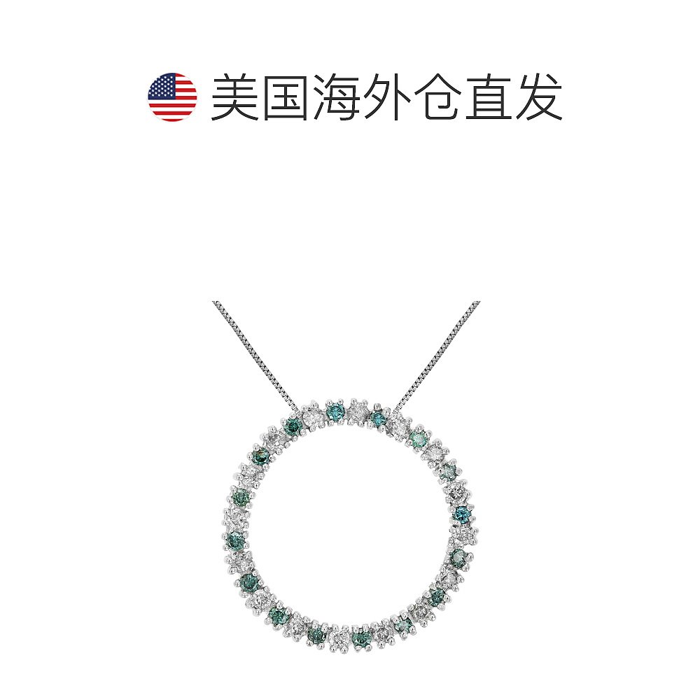 自营 vir jewels1/2 cttw 蓝色和白色钻石圆形吊坠项链 14K 白金