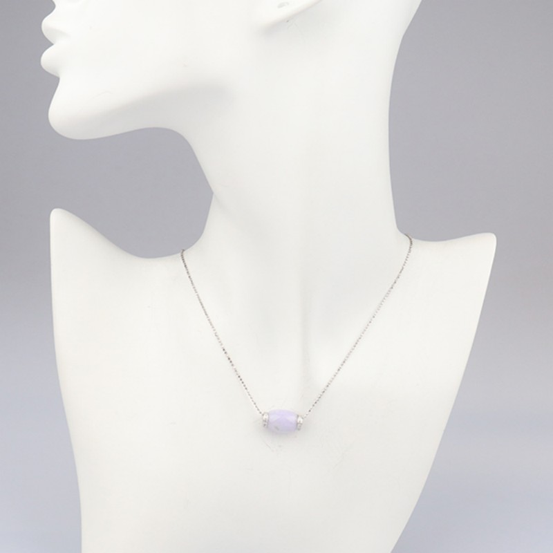 中古「95新」日本进口商品椭圆形紫色翡翠钻石项链750白金45cm
