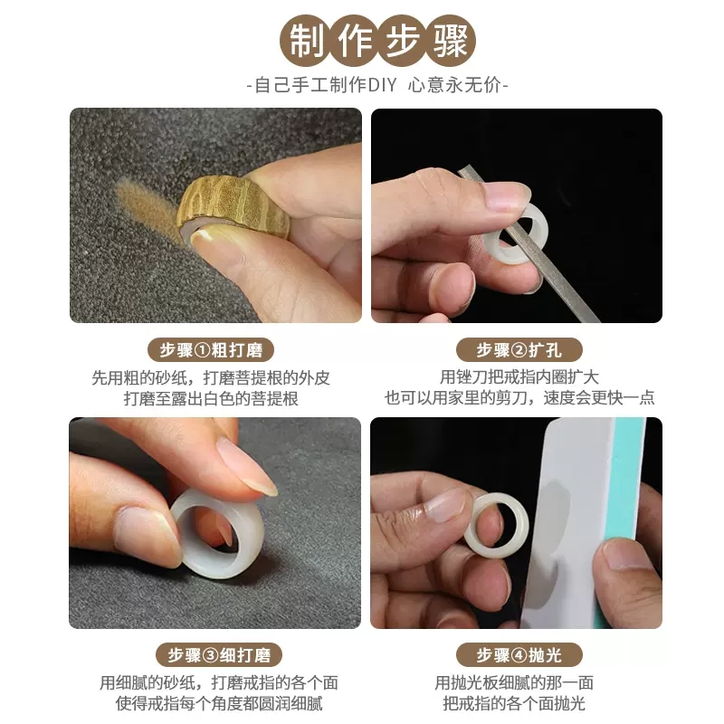半成品原籽白玉菩提根戒指手工diy材料包女打磨工具男款全菩提子