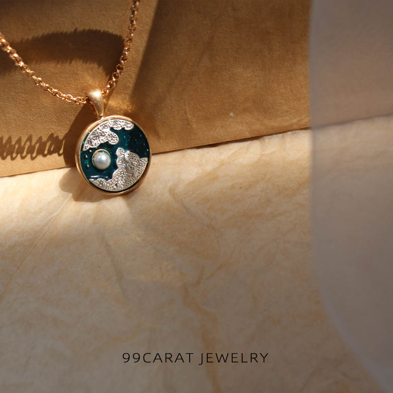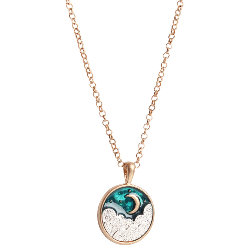 2022新品99克拉时尚文艺复古绿色日月设计项链颈链彩色闺蜜情侣XB