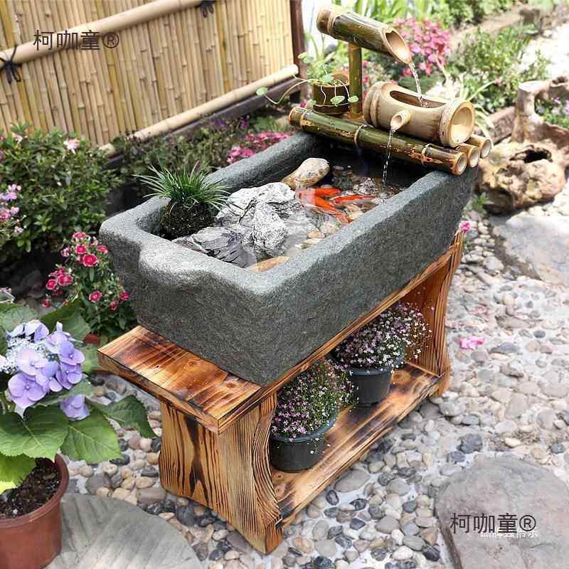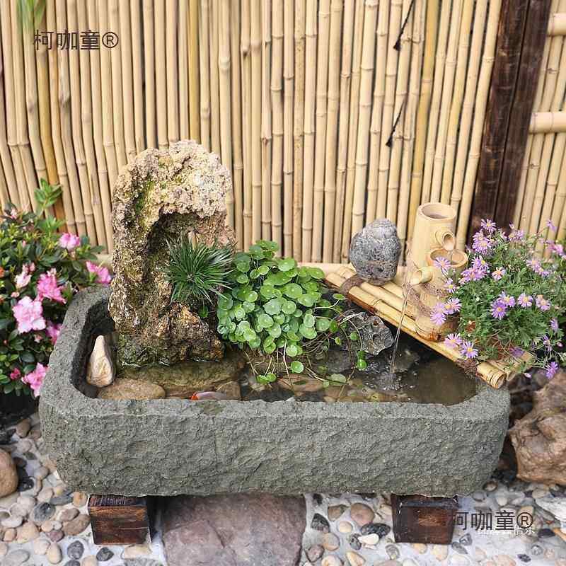老石日式造景石磨鱼缸庭院流水摆件循环水花园装饰阳台鱼池麦太保