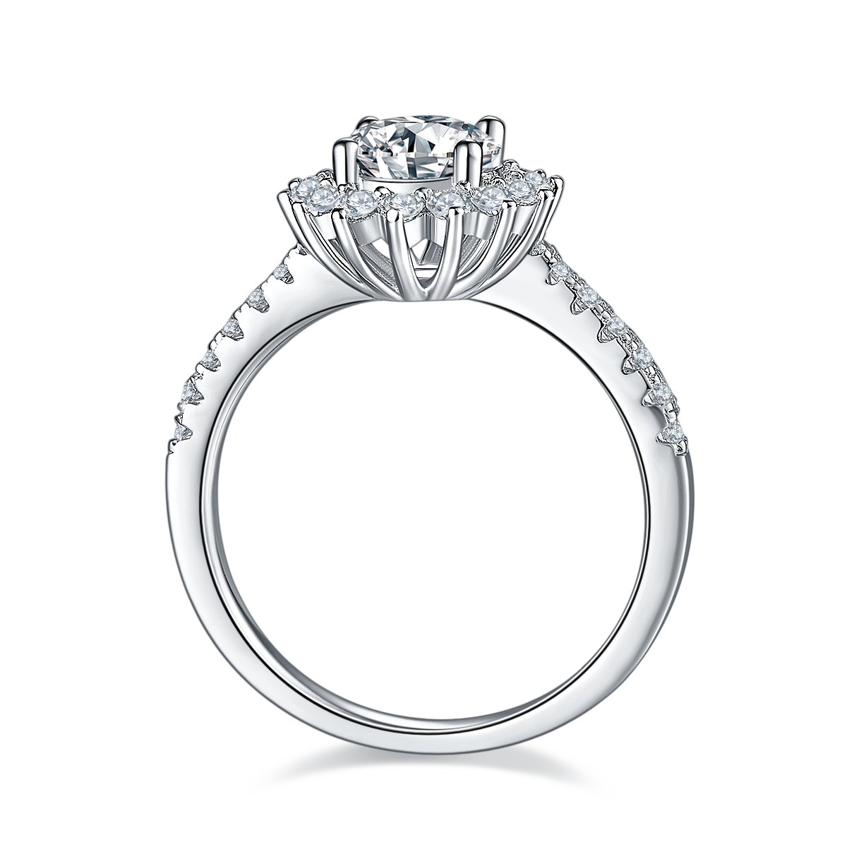 1克拉高品质莫桑钻太阳花钻戒925银镀金戒指豪华群镶经典求婚指环