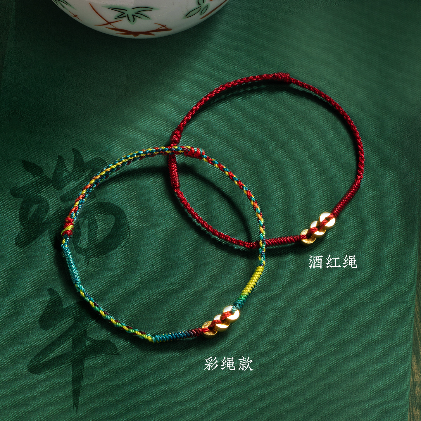 手工编织手绳小钱串财源滚滚五彩绳女极细款可调节精编手链红绳礼