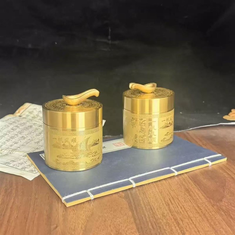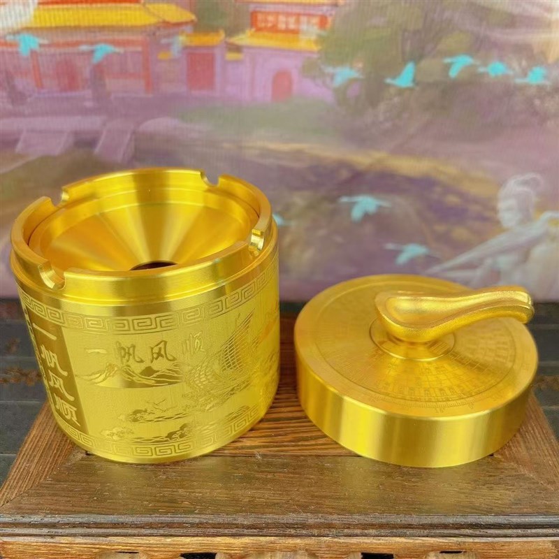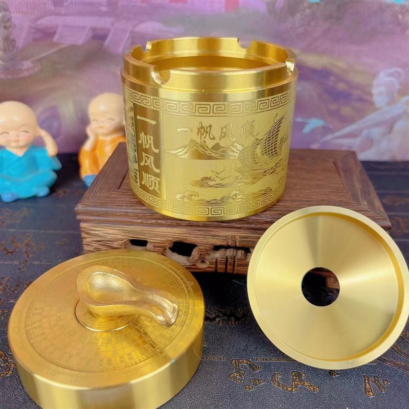 黄铜一帆风顺烟灰缸带盖防飞灰车载烟灰缸办公室客厅桌面摆件礼品