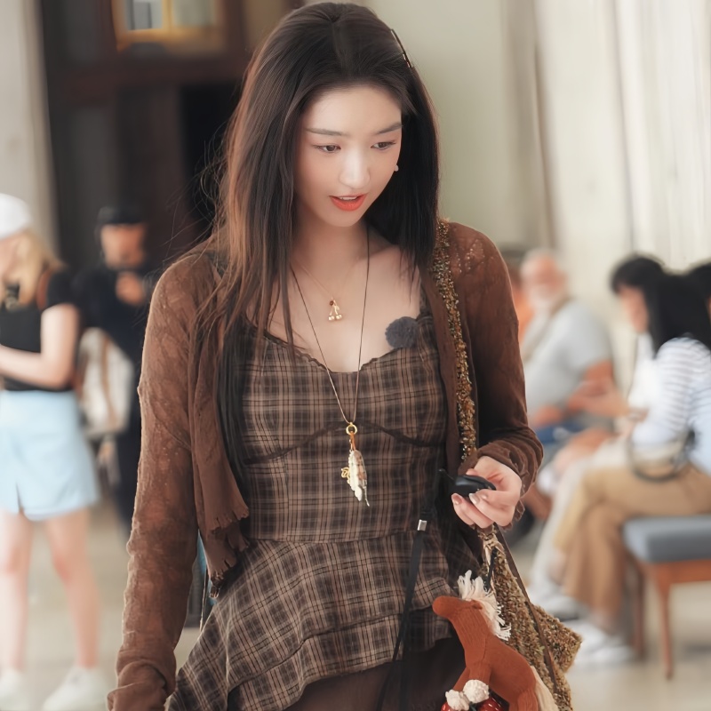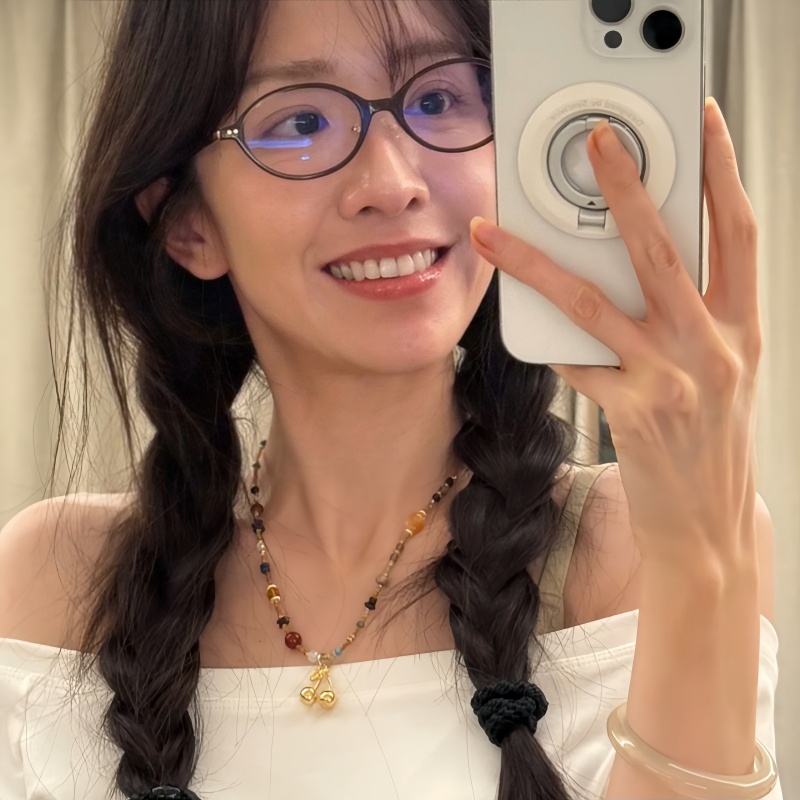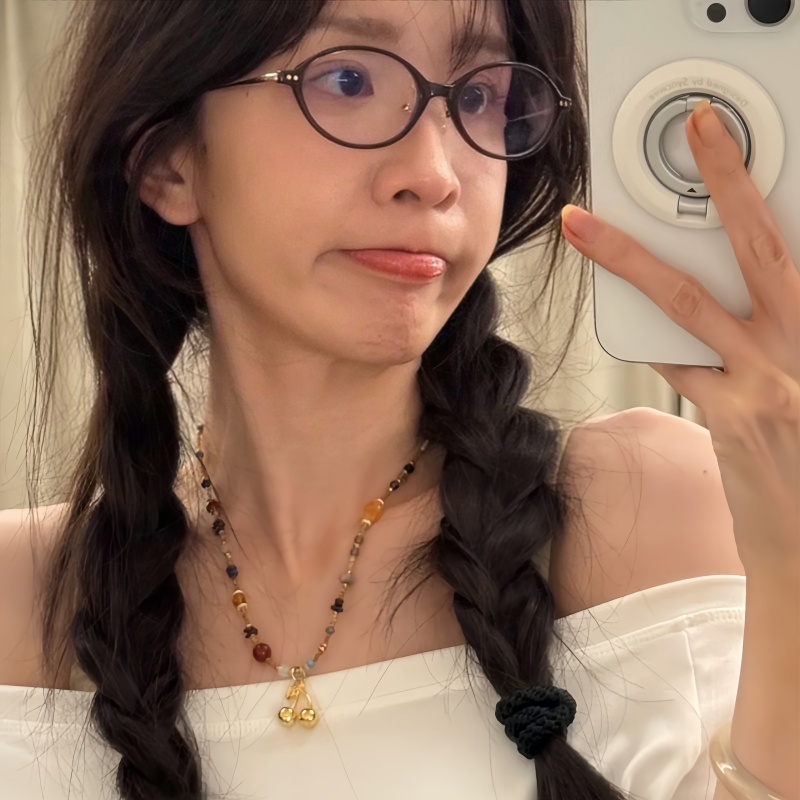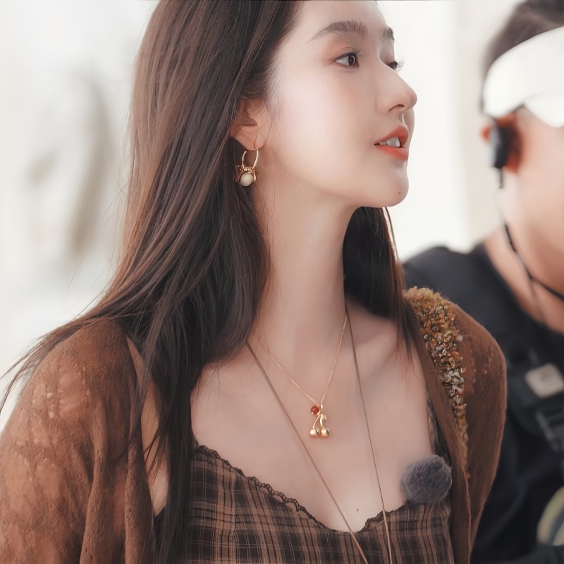 新款碎石流苏项链樱桃吊坠叠带锁骨链轻奢复古金色耳环女