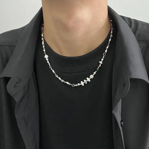 潮男高级男设计感配饰男士项链帅气钛钢小众锁骨链拼接嘻哈冷淡风