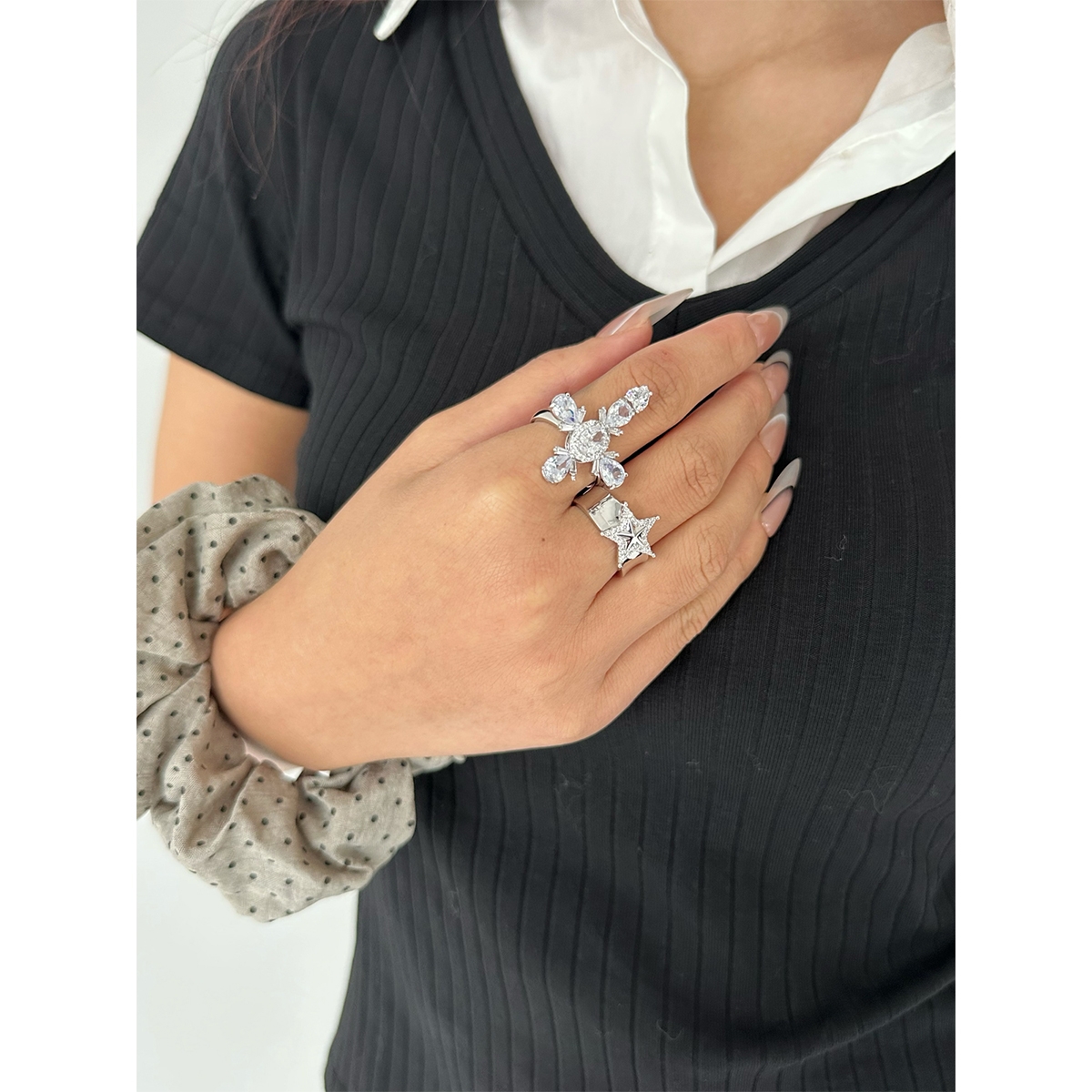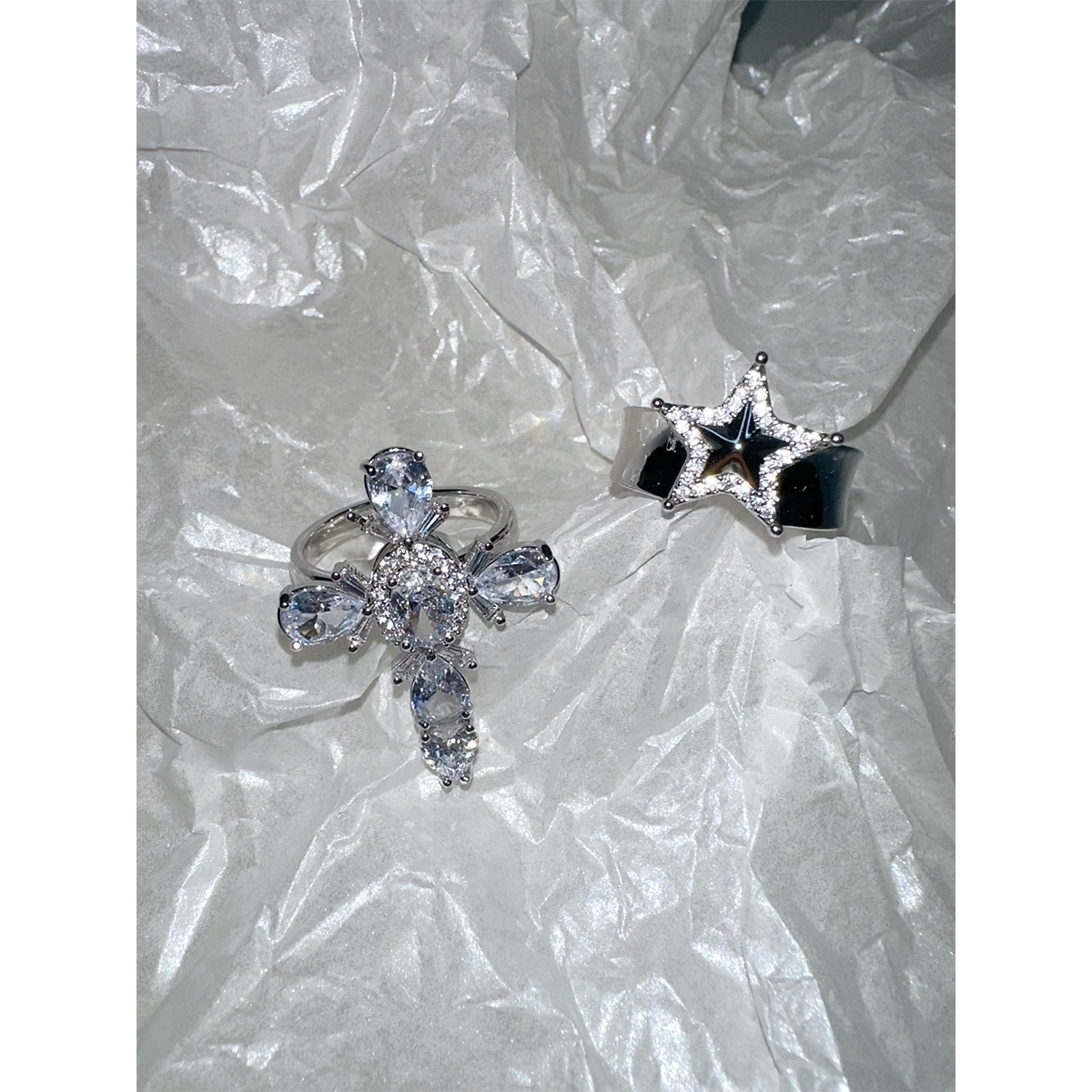 atmshop欧美超闪高级轻奢十字架五角星微镶戒指食指戒开口可调节