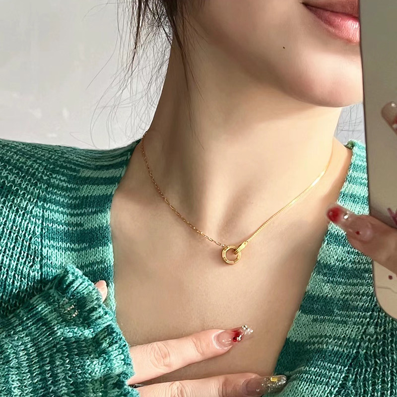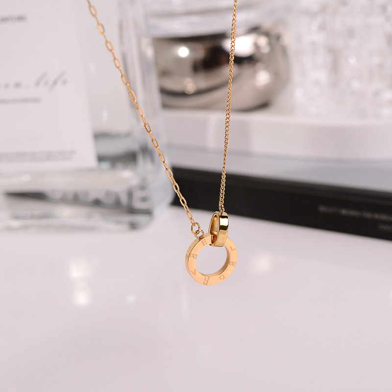 钛钢项链 环环相扣项链女简约气质轻奢设计感双环锁骨链百搭配饰