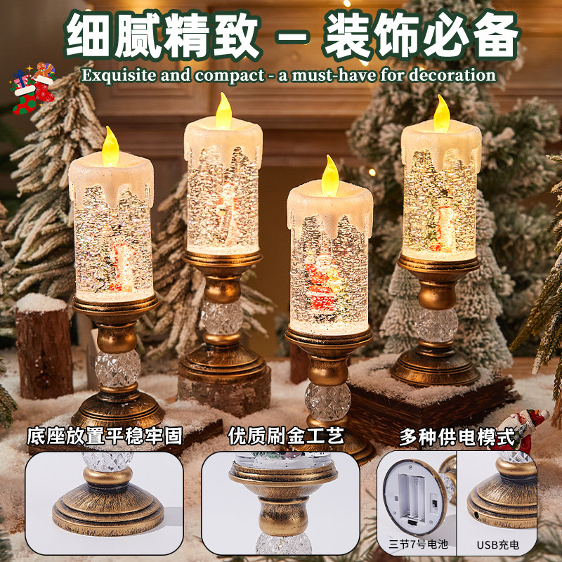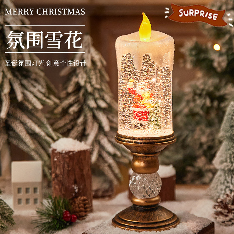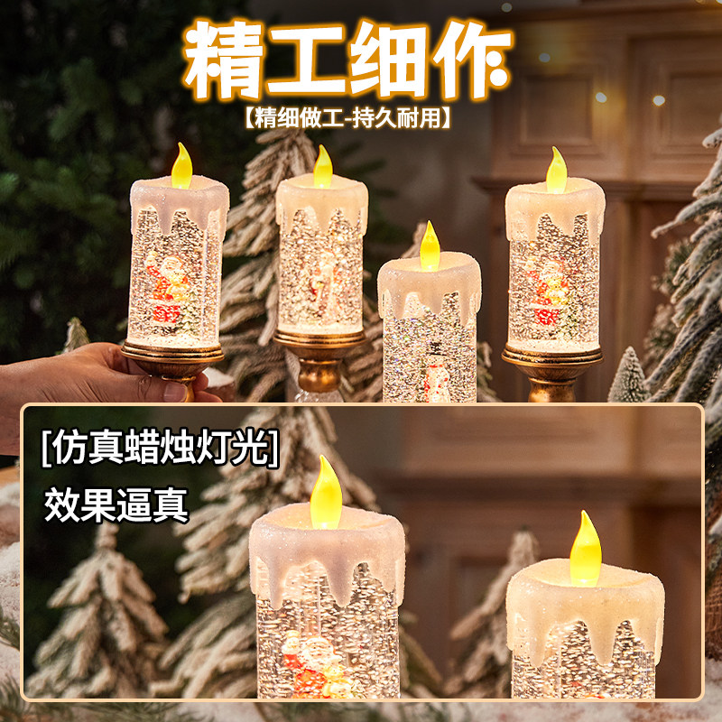 led蜡烛夜灯氛围灯圣诞透明水晶场景内饰装饰品创意发光自动飘雪