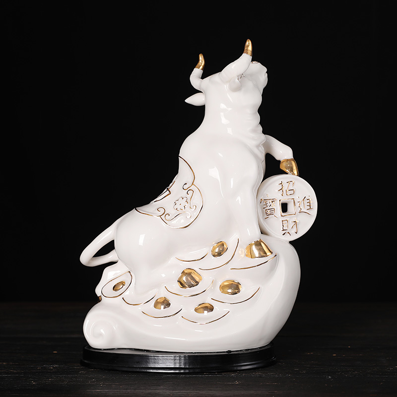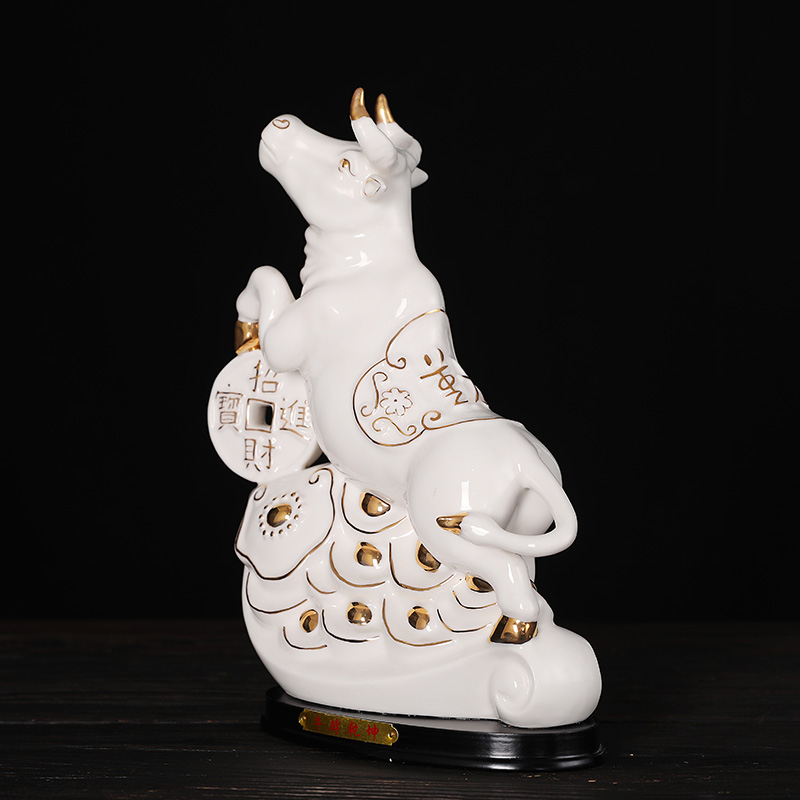 白色陶瓷牛十二生肖牛摆件简约工艺品办公室桌面开业庆典日常送礼