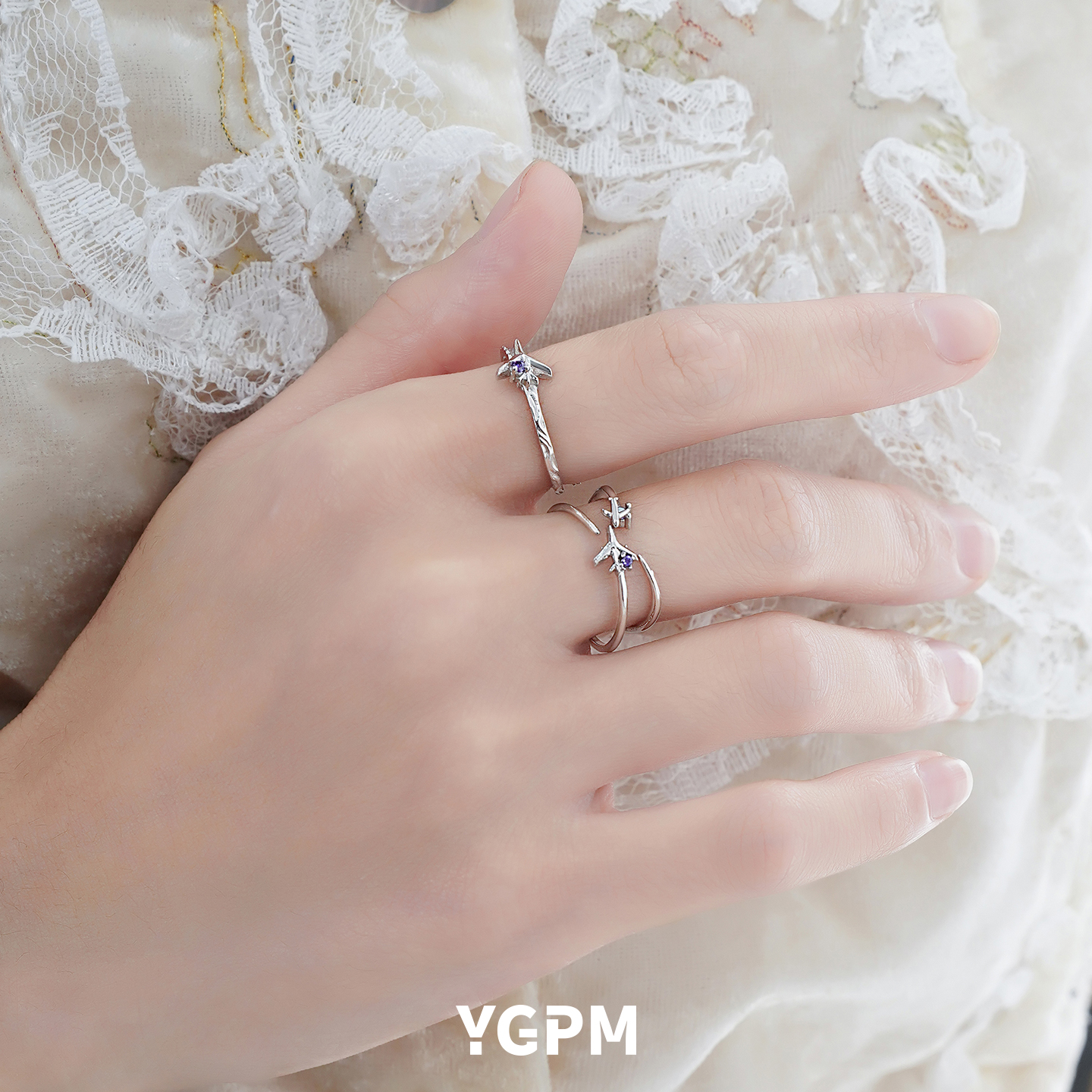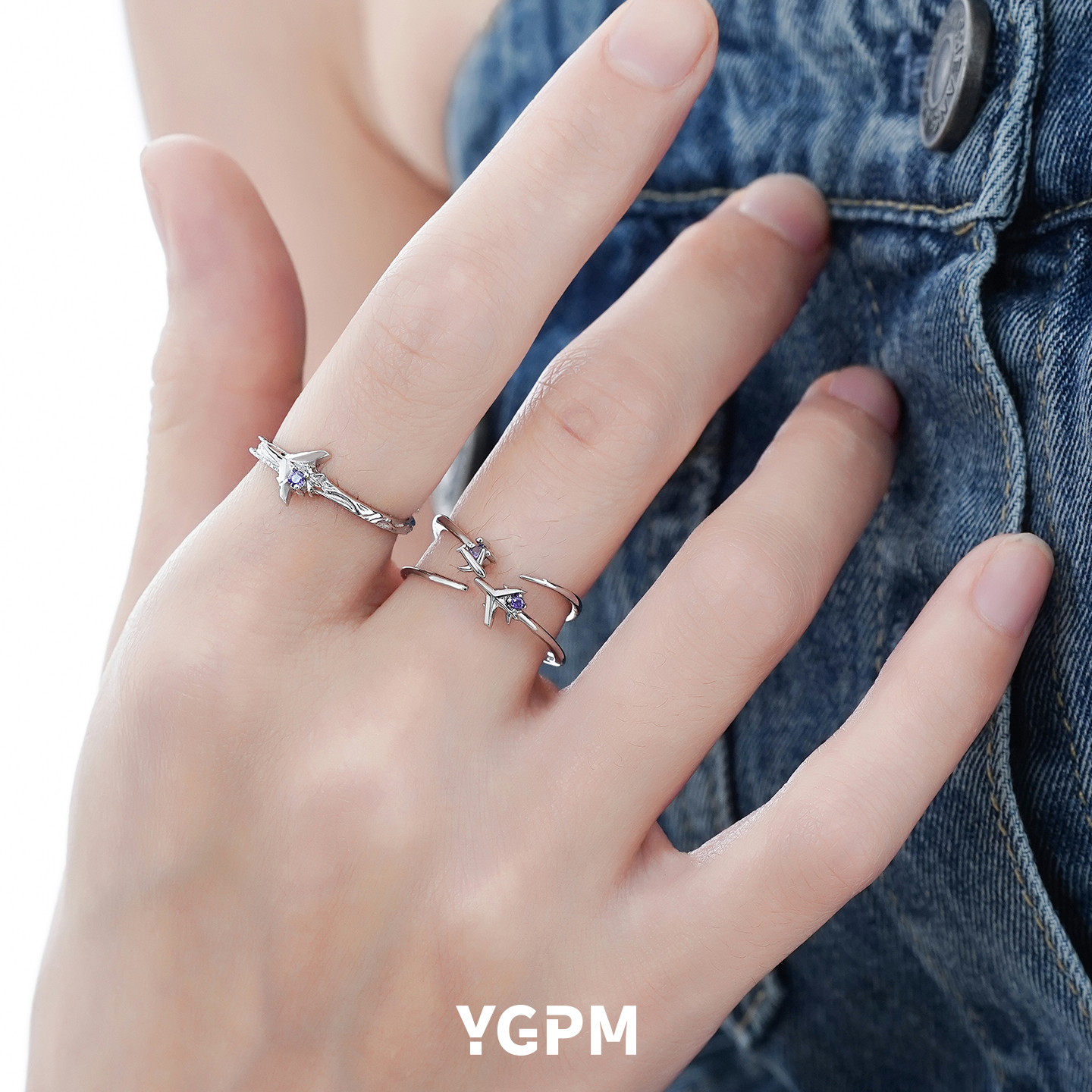 YGPM飞机戒指女轻奢高级感S925纯银原创小众设计开口可调节情侣戒